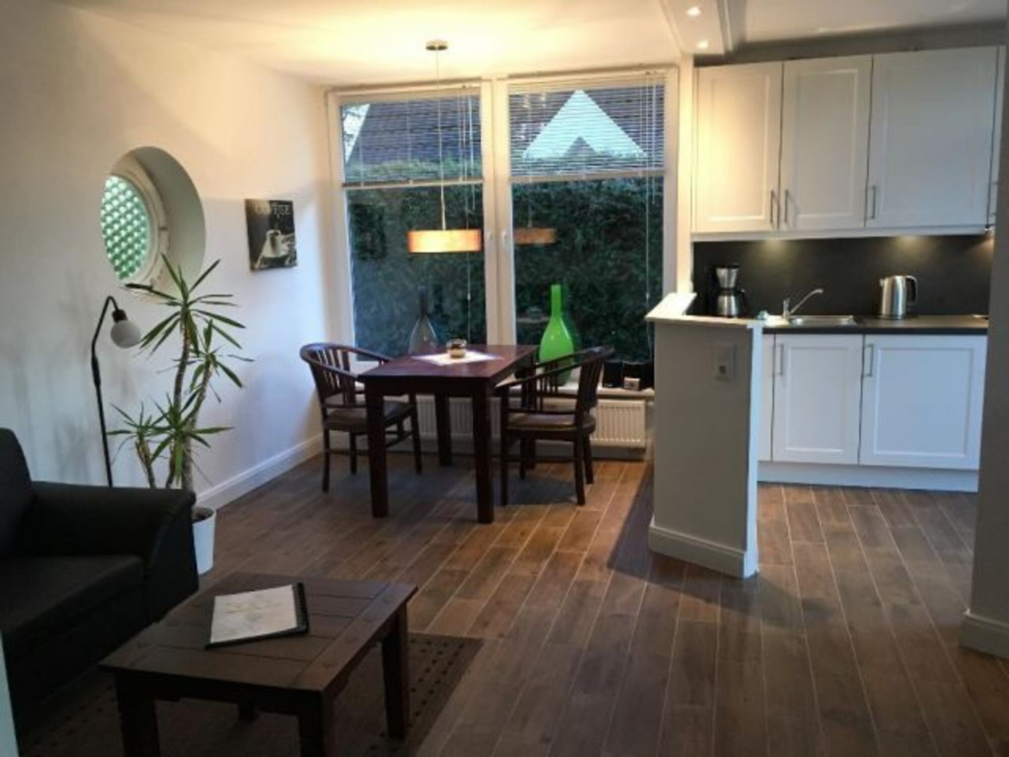 Cerankochfeld, Dunstabzugshaube, Kühlschrank mit Gefrierfach, Korkenzieher / Flaschenöffner, Essplatz in der Küche, TV in der Küche