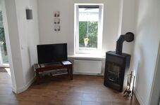 Der Wohnraum mit modernem Essplatz ist mit einer Couchgarnitur, Satelliten –Flach -TV, Stereoanlage mit CD-Player und Kaminofen ausgestattet. In der Küche finden Sie neben Kühlschrank, Tiefkühlfach , Mikrowelle, Cerankochfeld, Backofen, Spüle, Geschirrspüler, Kaffeemaschine und Toaster, genügend Eß- und Kochgeschirr, Gläser und Besteck vor. Ein Holzkohlegrillkamin, Sonnenliegen und Gartenmöbel runden die Ausstattung ab. Ein Pkw-Stellplatz befindet sich direkt am Haus auf dem Grundstück.