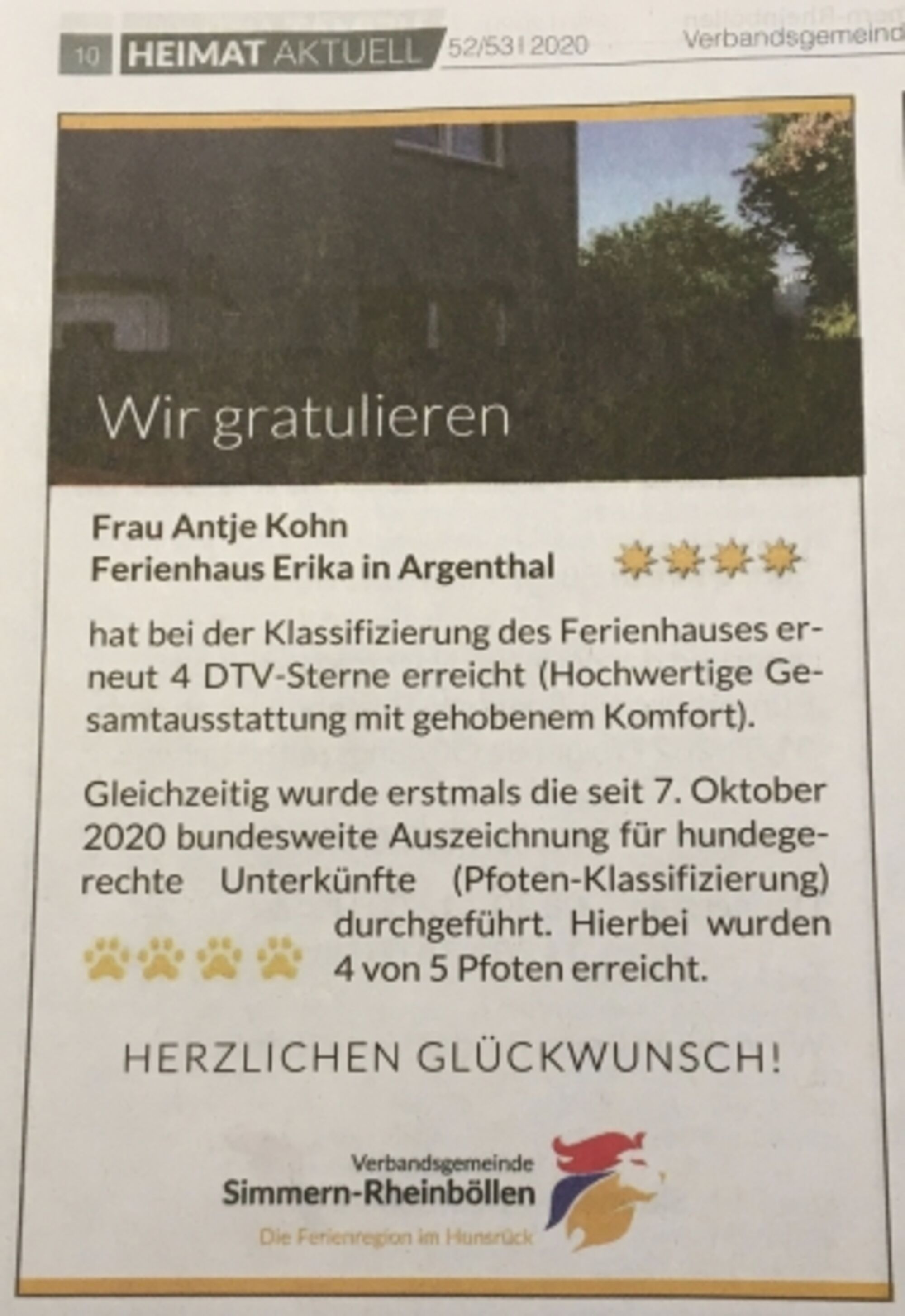 Ganz neu ... ebenfalls vom DTV nun auch mit vier "Hundepfoten" zertifiziert.