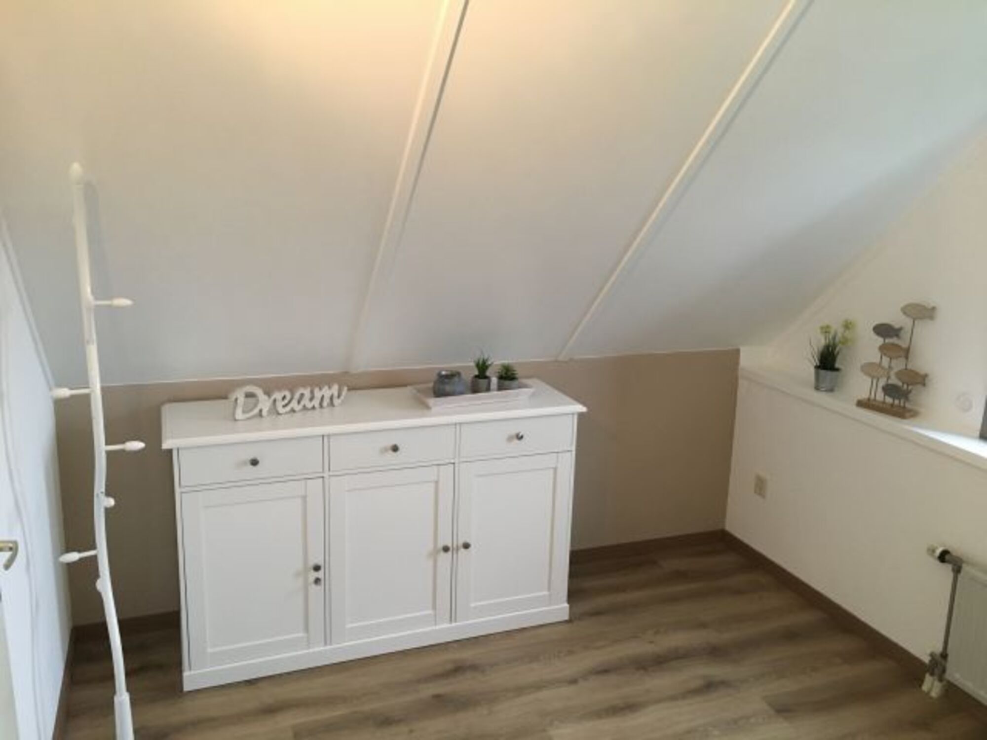 Im Obergeschoss befinden sich zwei Schlafzimmer, eines mit Doppelbett, das andere mit zwei Einzelbetten. Eine weitere Toilette befindet sich ebenfalls im Obergeschoss.