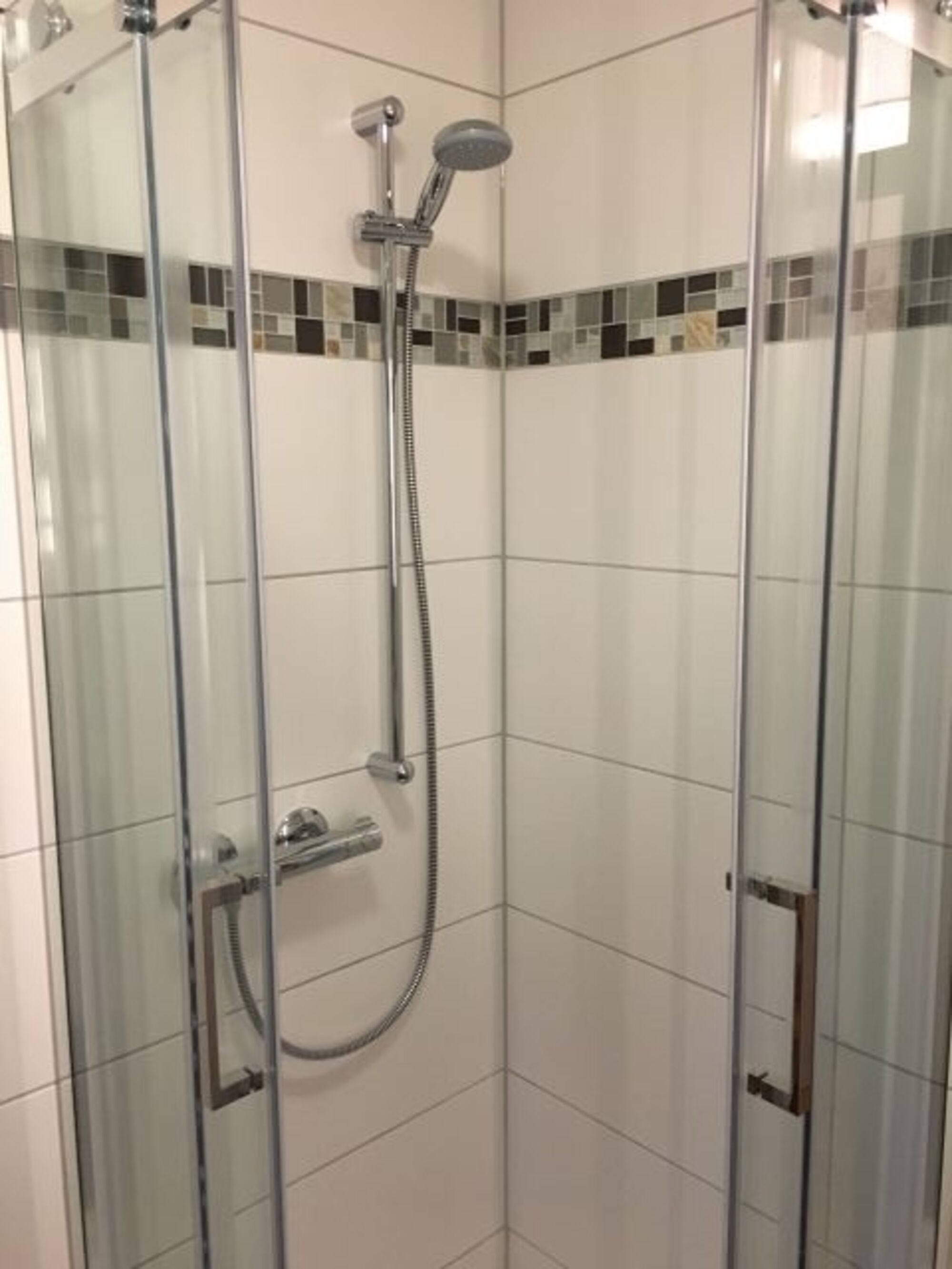 Weiterhin befindet sich im Erdgeschoss ein Bad mit Dusche und eine separate Toilette.