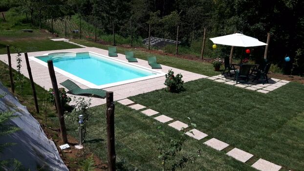 Ferienhaus INES 2 ist ein Ferienhaus, in kompletter Natur – ideal für Spaziergänge, vollkommene Ruhe und den Gästen steht, ein Schwimmbad (9 m x 4.50m, tief: 1.30m) zur exklusiven Nutzung zur Verfügung.