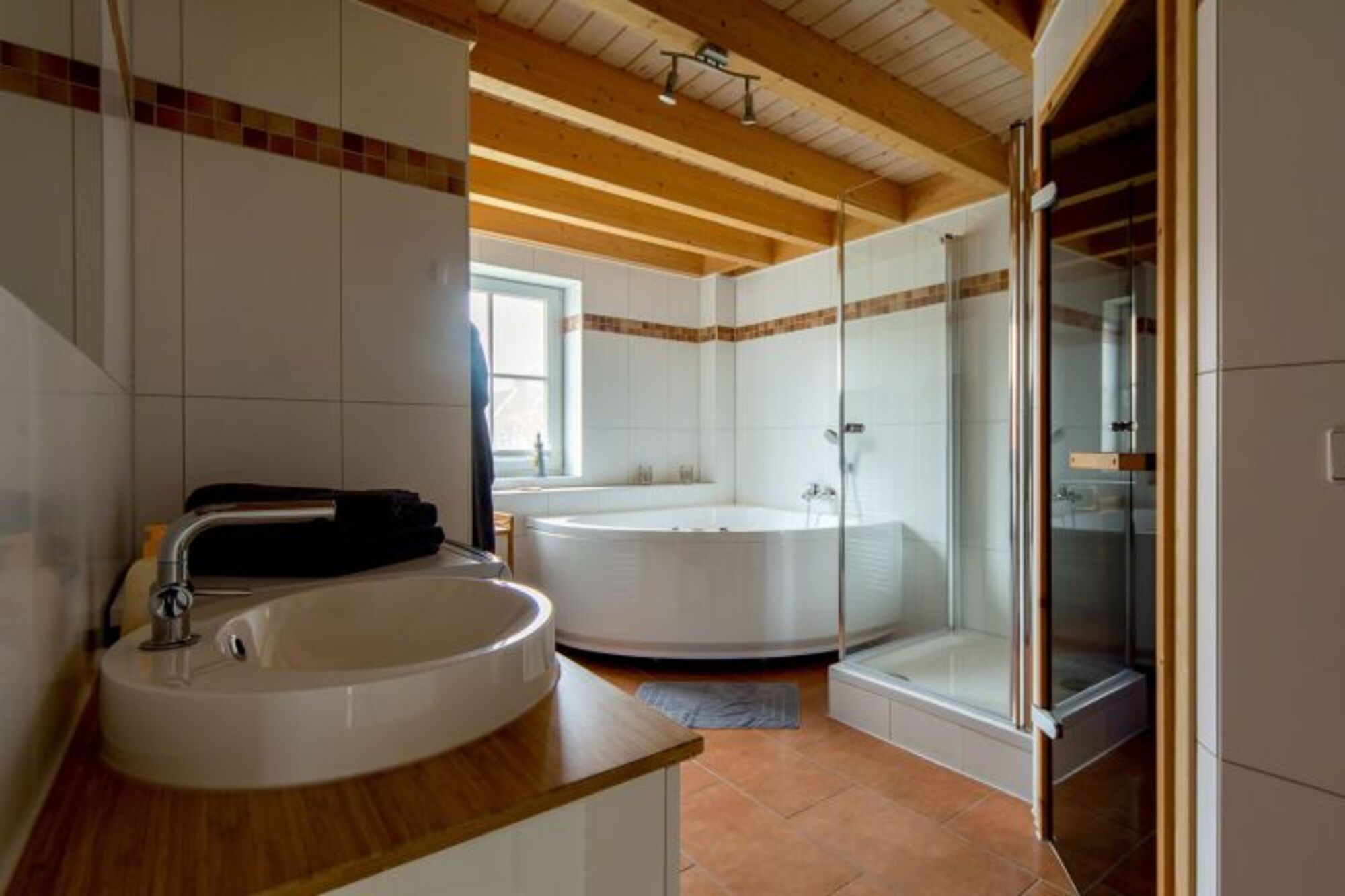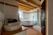 Neben einem Kamin sorgen ein eigener Whirlpool und eine eigene Sauna für ostfriesische Gemütlichkeit - Badesalze und Saunaaufgüsse stehen bereits bereit und sind im Mietpreis inbegriffen.