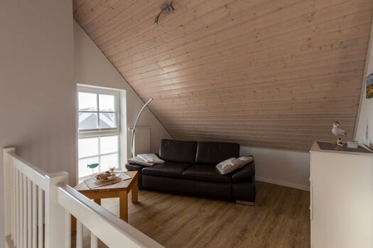 Im Sommer lädt die Terrasse zu gemütlichen Abenden ein - im Winter bietet die Galerie einen zusätzlichen Rückzugsort zum Lesen und Entspannen.