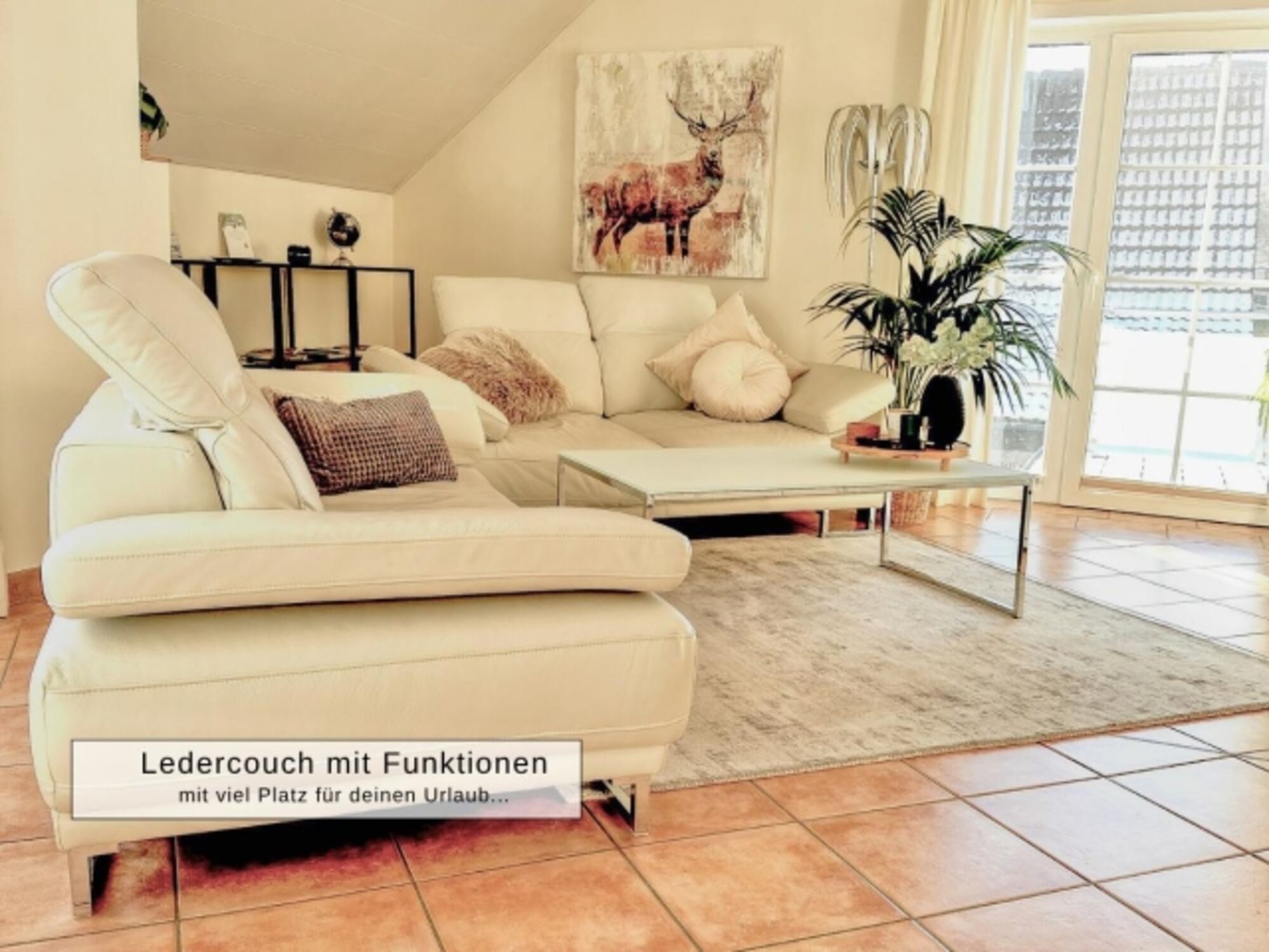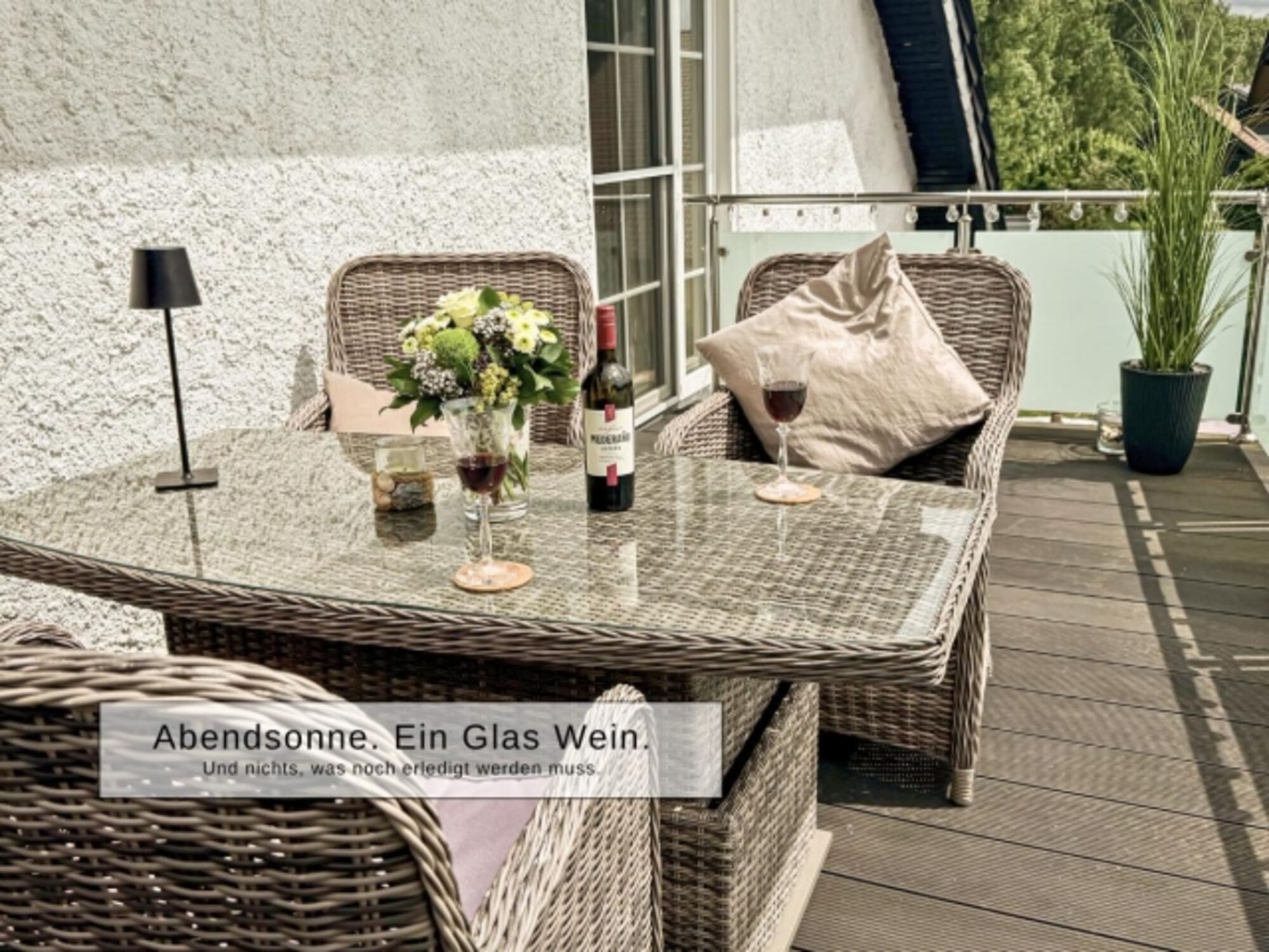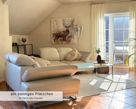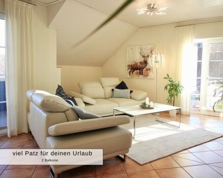 Auf 115 m² erwartet dich eine stilvoll eingerichtete 5-Sterne-Ferienwohnung mit Kamin, zwei Balkonen und viel Platz für dich und deine Hunde.