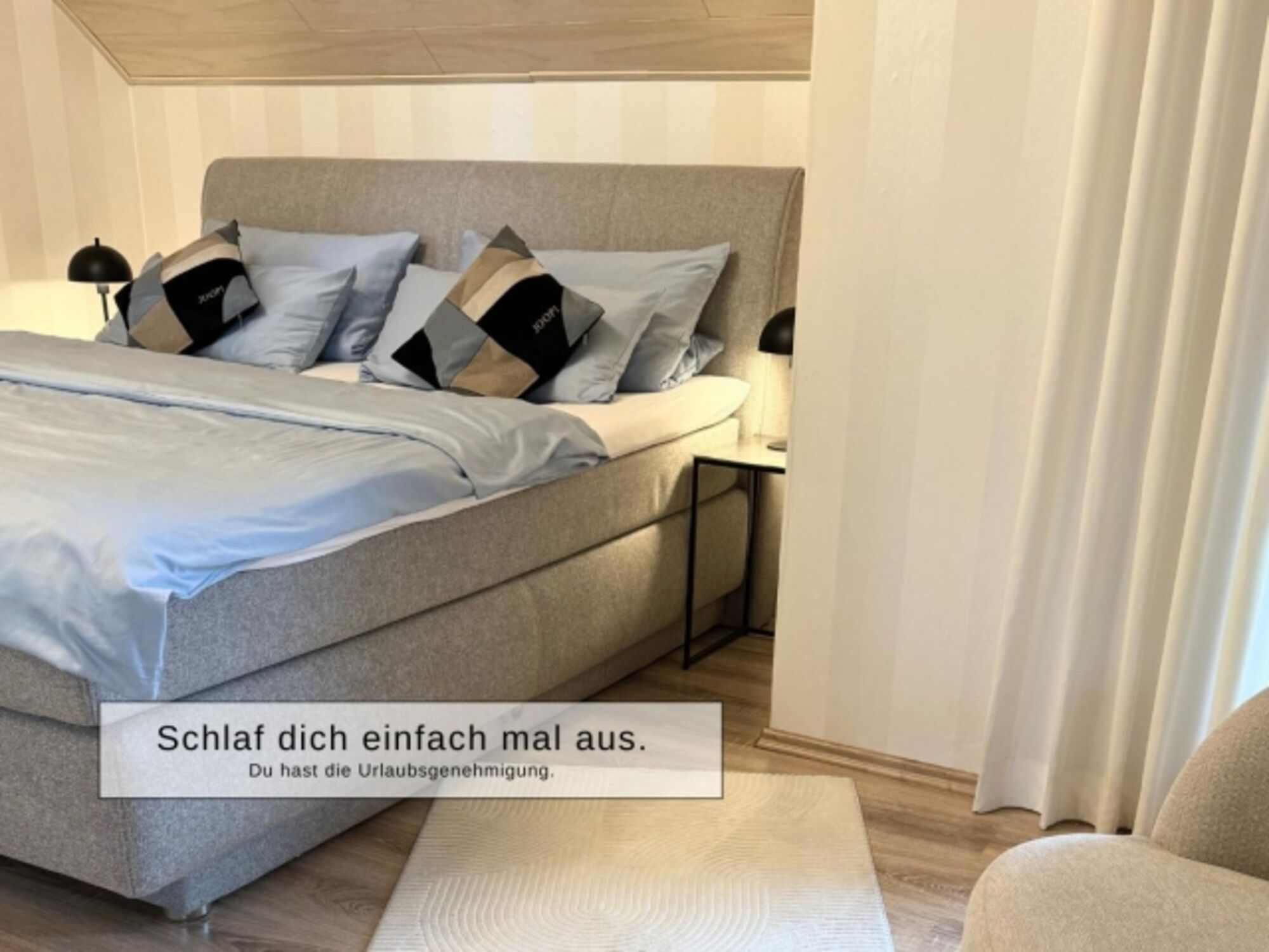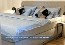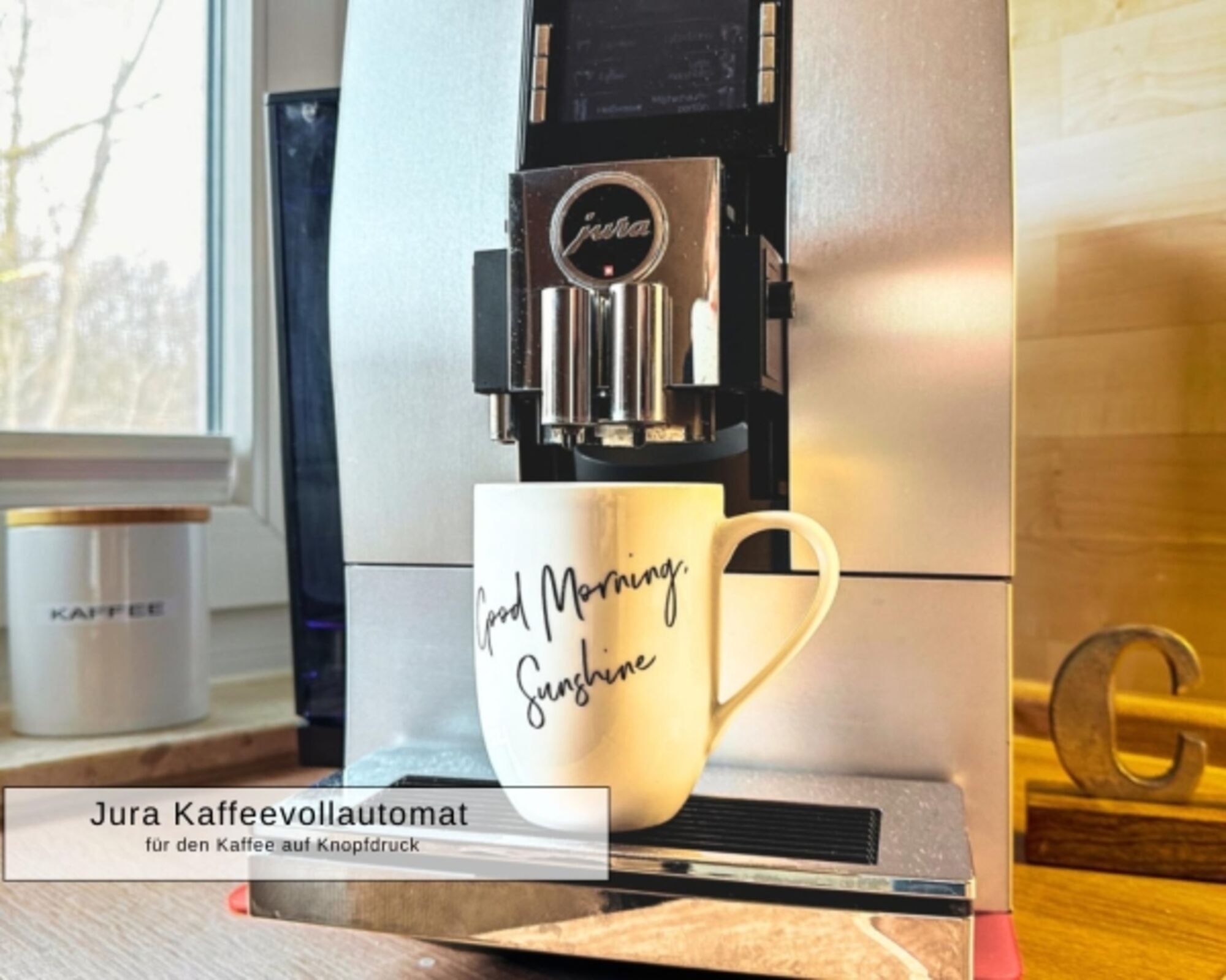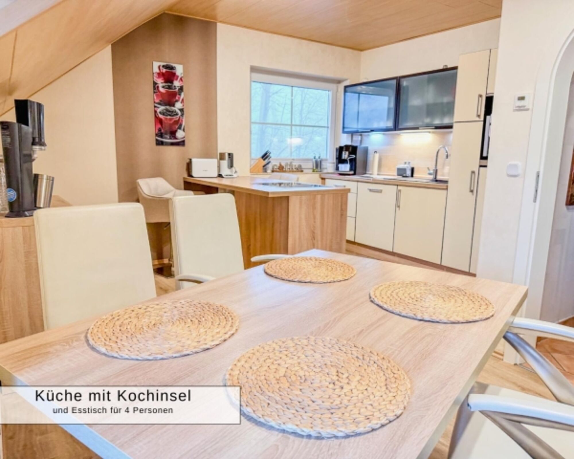 Die geschlossene Küche mit Insel und Jura-Kaffeevollautomat, das neue Bad mit ebenerdiger Dusche, zwei Schlafzimmer mit Boxspringbetten und viele Inklusivleistungen (Bettwäsche, Handtücher, Kaffee, Kaminholz) machen den Aufenthalt perfekt.