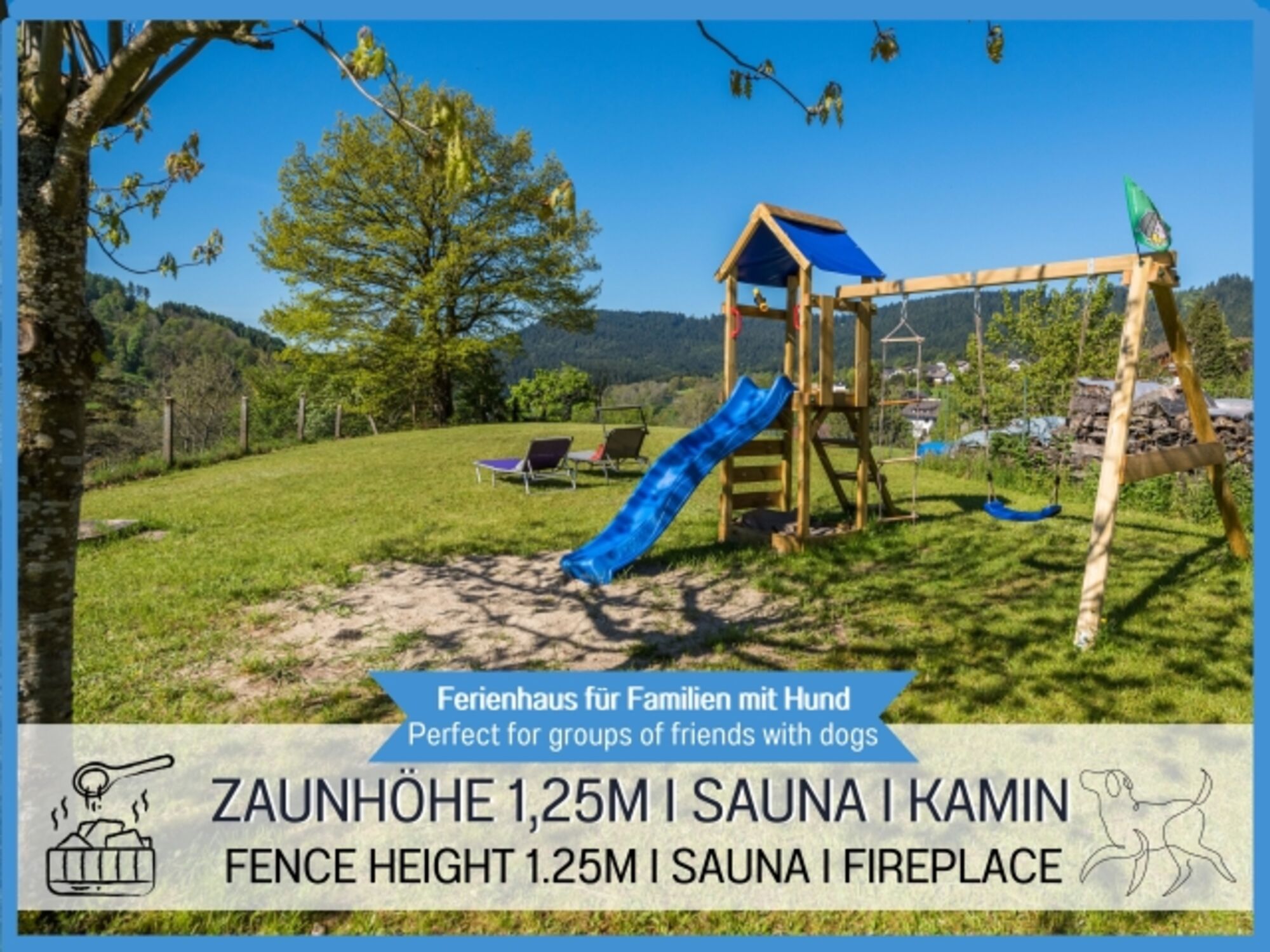 Traumhaus Ferienhaus Burghalde, Kamin, Aussensauna, Zaun, WLAN