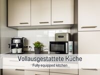 4-Platten Herd, Cerankochfeld, Dunstabzugshaube, Kühlschrank mit Gefrierfach, Gefrierschrank, Kaffeevollautomat, Korkenzieher / Flaschenöffner, Gewürze (Salz, Pfeffer, Zucker), Öl / Essig, Geschirrhandtücher, Mülltüten