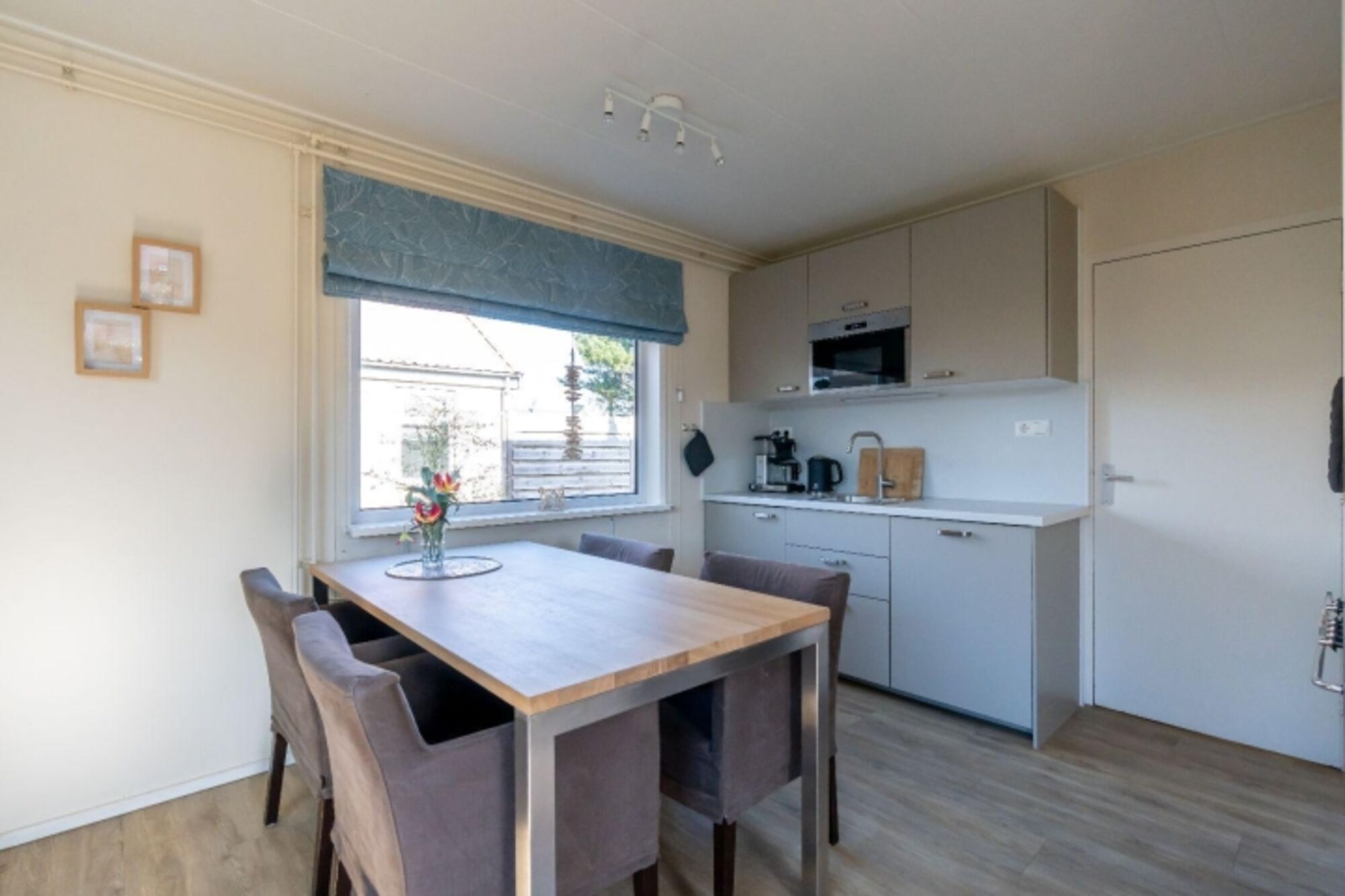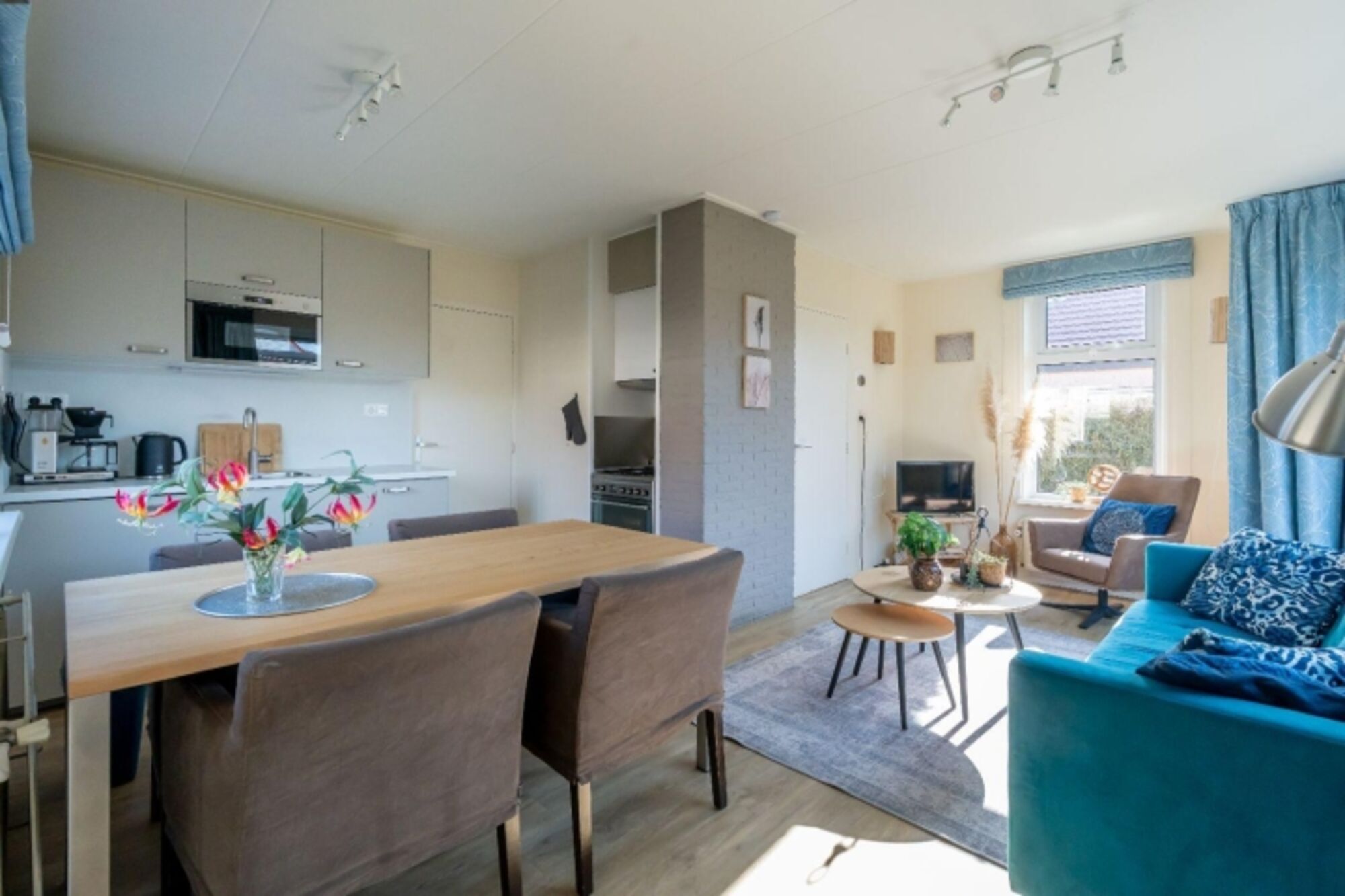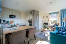 In der neuen, offenen Küche mit einer Essgruppe für vier Personen finden Sie u.a. einen 4-Brenner-Gaskochfeld mit Backofen, eine Spülmaschine, einen Kühlschrank mit Gefrierfach und eine Mikrowelle. Für die Kaffeeliebhaber gibt es eine Moccamaster Kaffeemaschine.