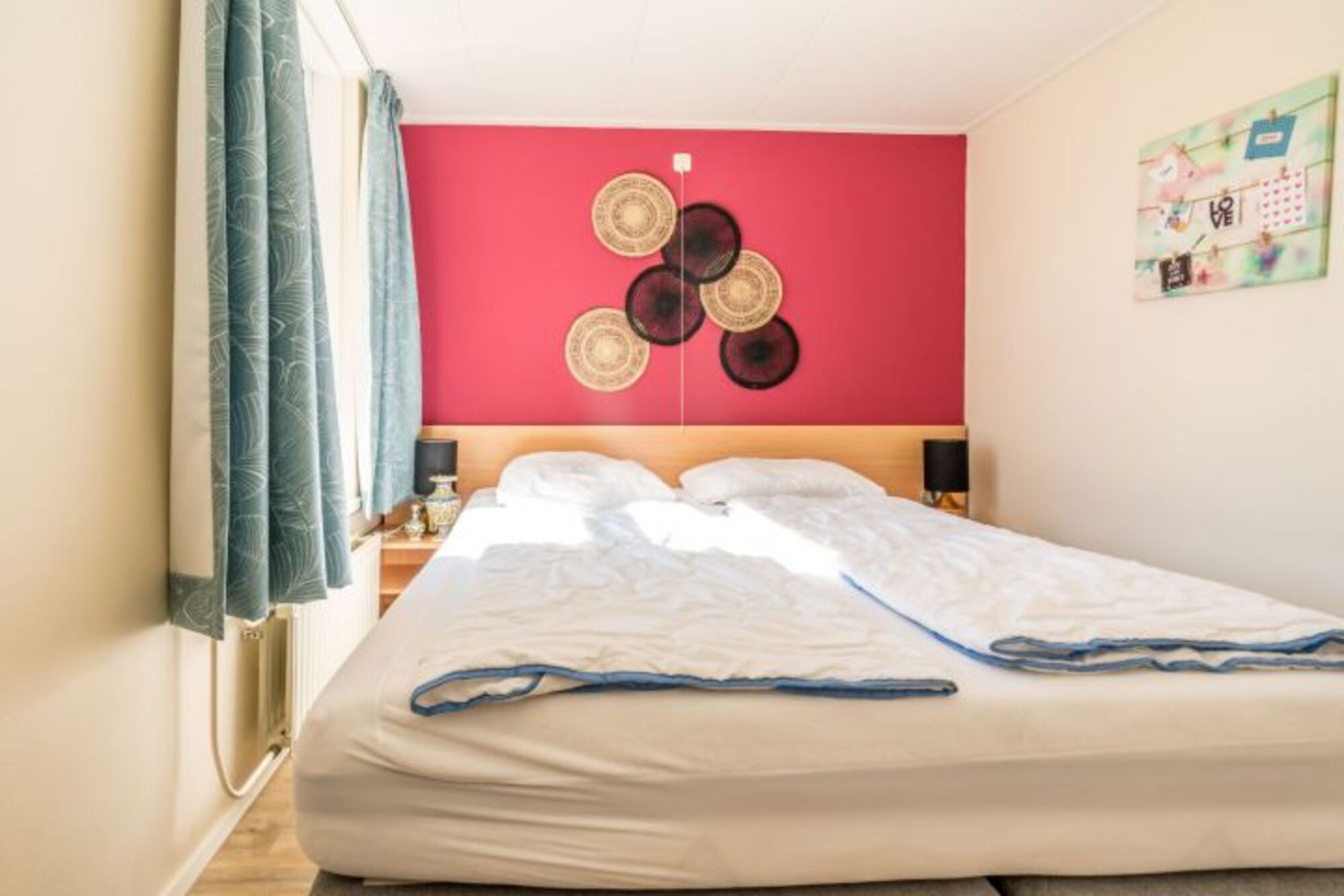 Es gibt drei Schlafzimmer, eins mit einem Doppelbett von 180x210 (Boxspring) und zwei mit je einem Einzelbett. Es gibt ausreichend Schränke.
