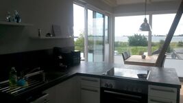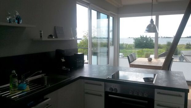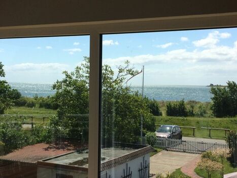 Das Ferienhaus Fehmarnsund (Baujahr 2017) hat einen wunderbaren Blick zum Strand und zur Fehmarnsundbrücke.