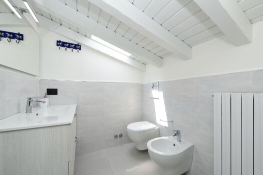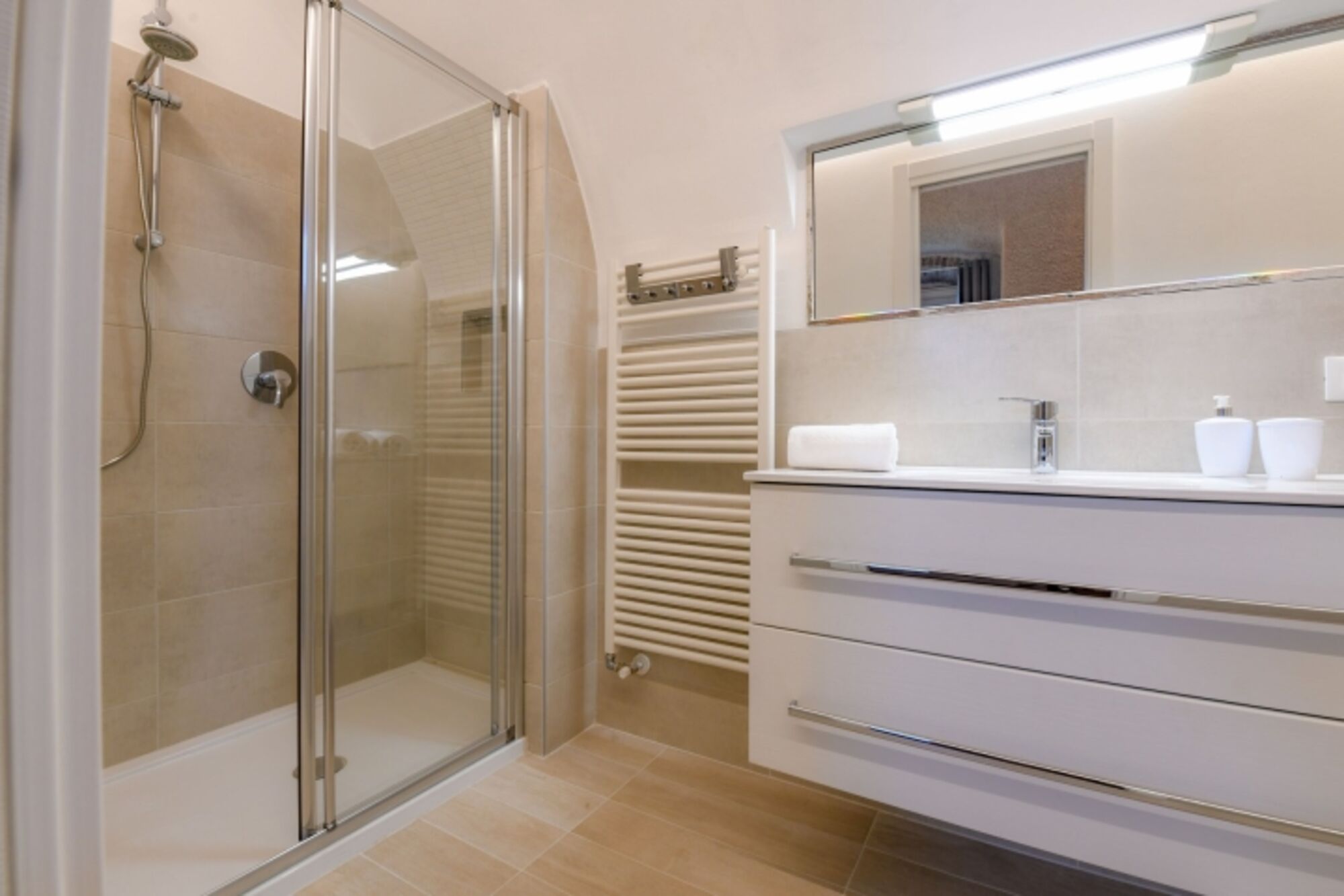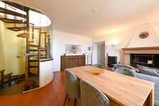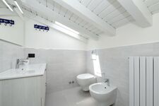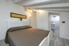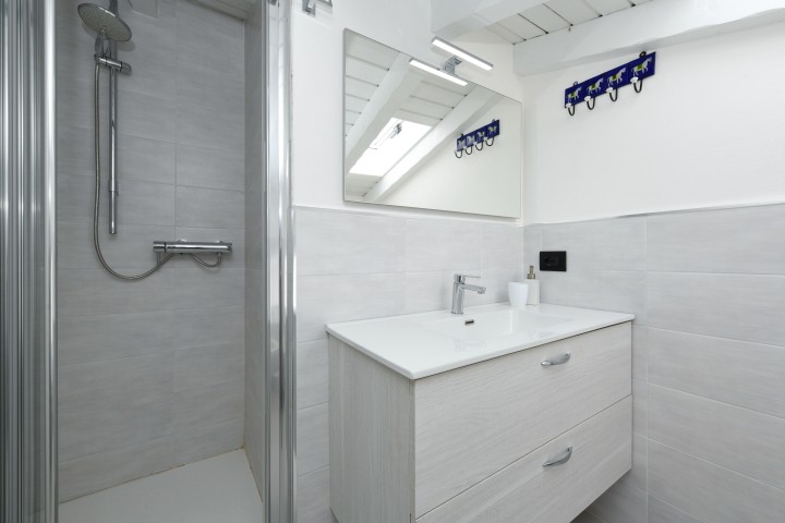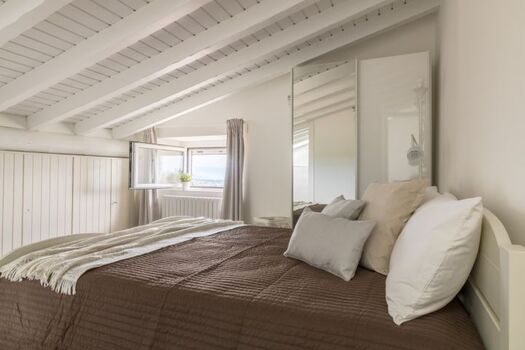 Das Ferienhaus verfügt für die Gäste über 2 Schlafräume mit eigenen Badezimmer mit Dusche, ein liegt im Dachgeschoss mit Seeblick und mit Klimaanlage und ein im Untergeschoss mit privaten Zugang vom Hof. Eine Wendeltreppe führt in die obere und untere Etagen.