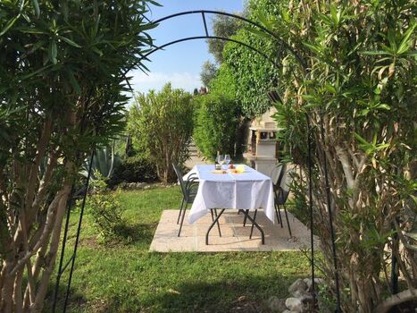 Im Garten dürfen Sie sich an den frischen Kräutern bedienen, um Ihre Speisen zu verfeinern und der Esstisch mit den Gartenstühlen lädt zum Aufenthalt im Freien ein.