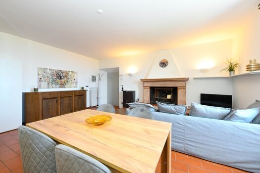 Im Entree erwartet Sie ein Wohn-Küchen-Essbereich mit Sat-TV und eine sehr gut eingerichtete Küche mit Kaffeemaschine, Toaster, Induktion Herd und Spülmaschine.