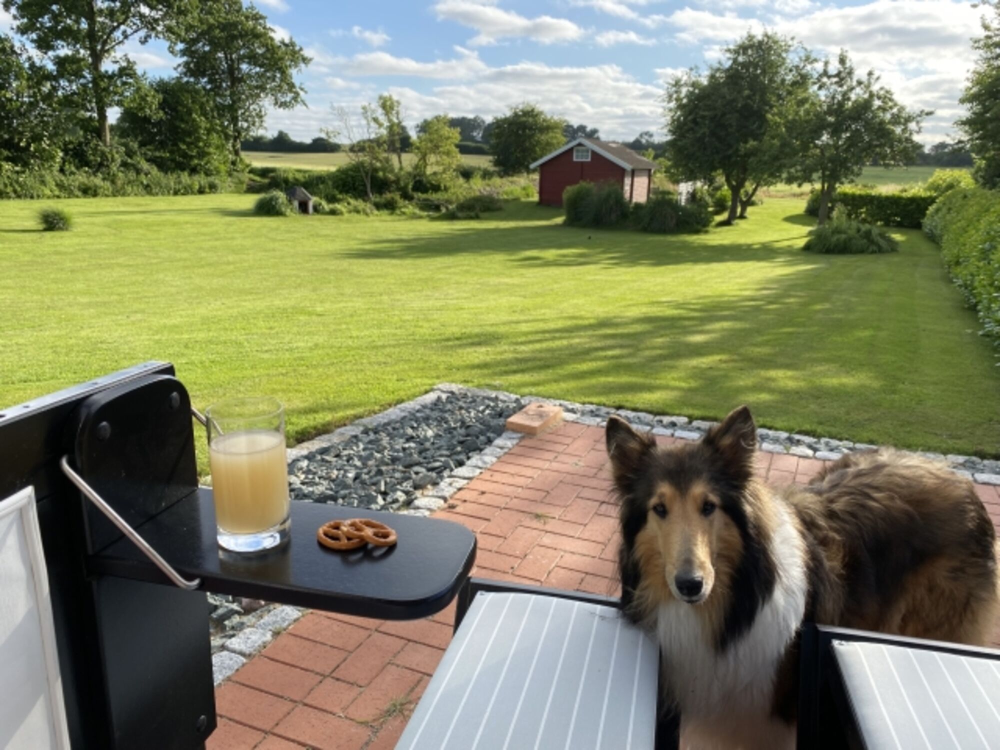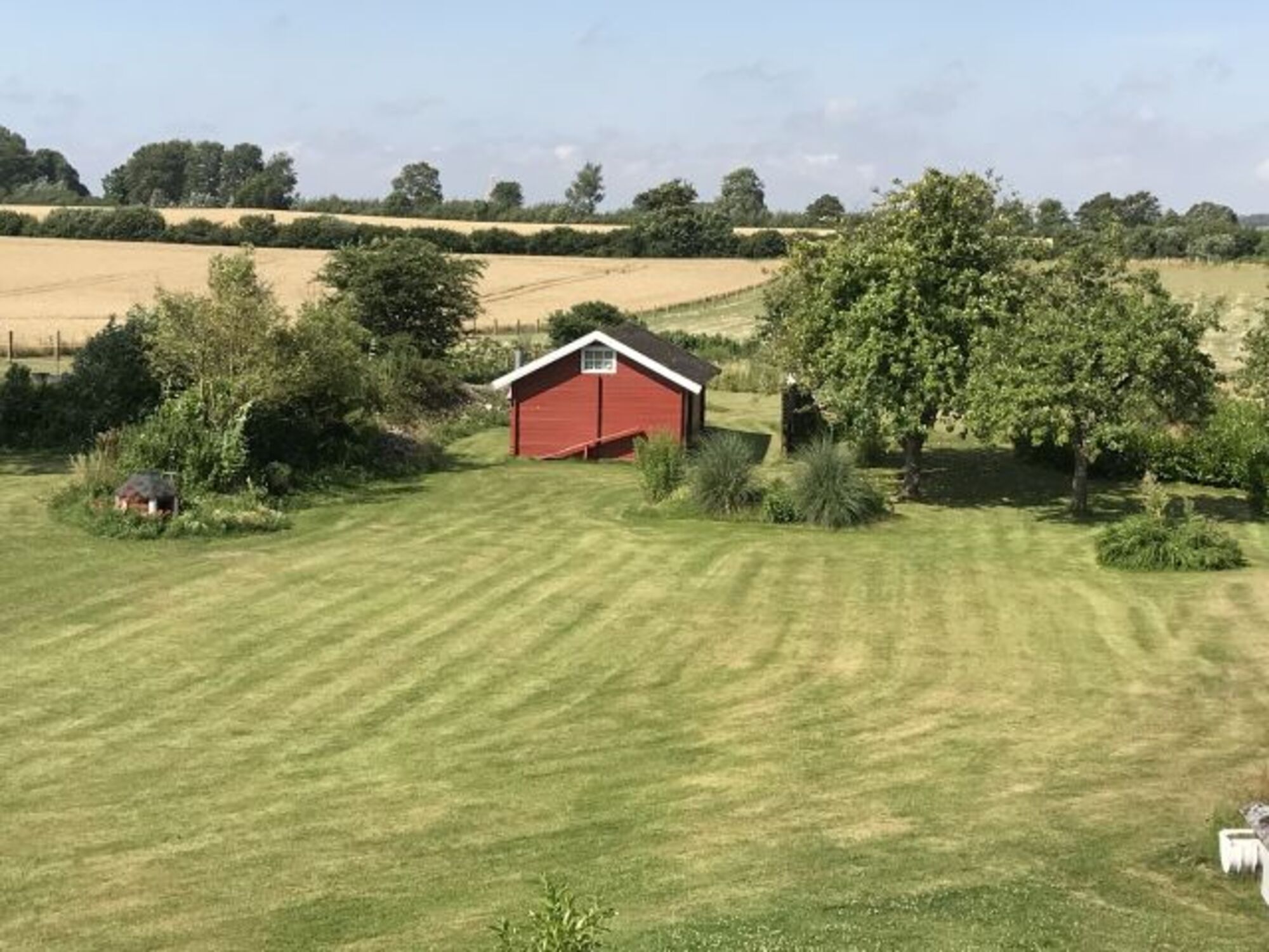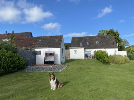 Ferienhaus in Kappeln-Kopperby. Gelegen in einer Einbahnstraße, kein Durchgangsverkehr. Ruhige Lage, mit Blick auf Felder und Wiesen, wo sich immer mal wieder Rehe im großen Garten sehen lassen. Ebenso finden Sie hier einen Teich -ca. 500 qm- wo sich die Karpfen darin gerne mit Toastbrot verwöhnen lassen. Auf dem mehrere 1000 qm großen Grundstück, welches Sonnenseitenlage hat, haben Sie viele Möglichkeiten Ruhe und Entspannung zu finden und genießen. Sofern Sie Ihren Hund mitbringen, wird dieser sich hier bestimmt auch wohlfühlen. Und wenn er/sie mag, kann er/sie auch gerne mit unserer Colliehündin Josie spielen. Bei der in 2017 komplett sanierten und renovierten Doppelhaushälfte können Sie in der Küche gemütlich sitzen, in den Garten schauen oder auch gleich rausgehen. Die Küche hat einen Geschirrspüler, Induktionsherd, Dunstabzug, Toaster, Kaffeemaschine, Nespressomaschine, Mixer, Kühlschrank mit Gefrierfach und vieles mehr. Im Erdgeschoß befindet sich ebenfalls das Schlafzimmer und das Badezimmer mit ebenerdiger Dusche und Waschmaschine. Im Obergeschoß liegt das Wohnzimmer mit Ausblick auf die kleinste Stadt Deutschlands -Arnis-. Hier können Sie es sich auf der Eckcouch oder im Relax-Lederdrehsessel gemütlich machen und den Tag ausklingen lassen. U. a. ist im Wohnzimmer ein Flachbildschirm -Sat-Empfang und Smart-TV-.