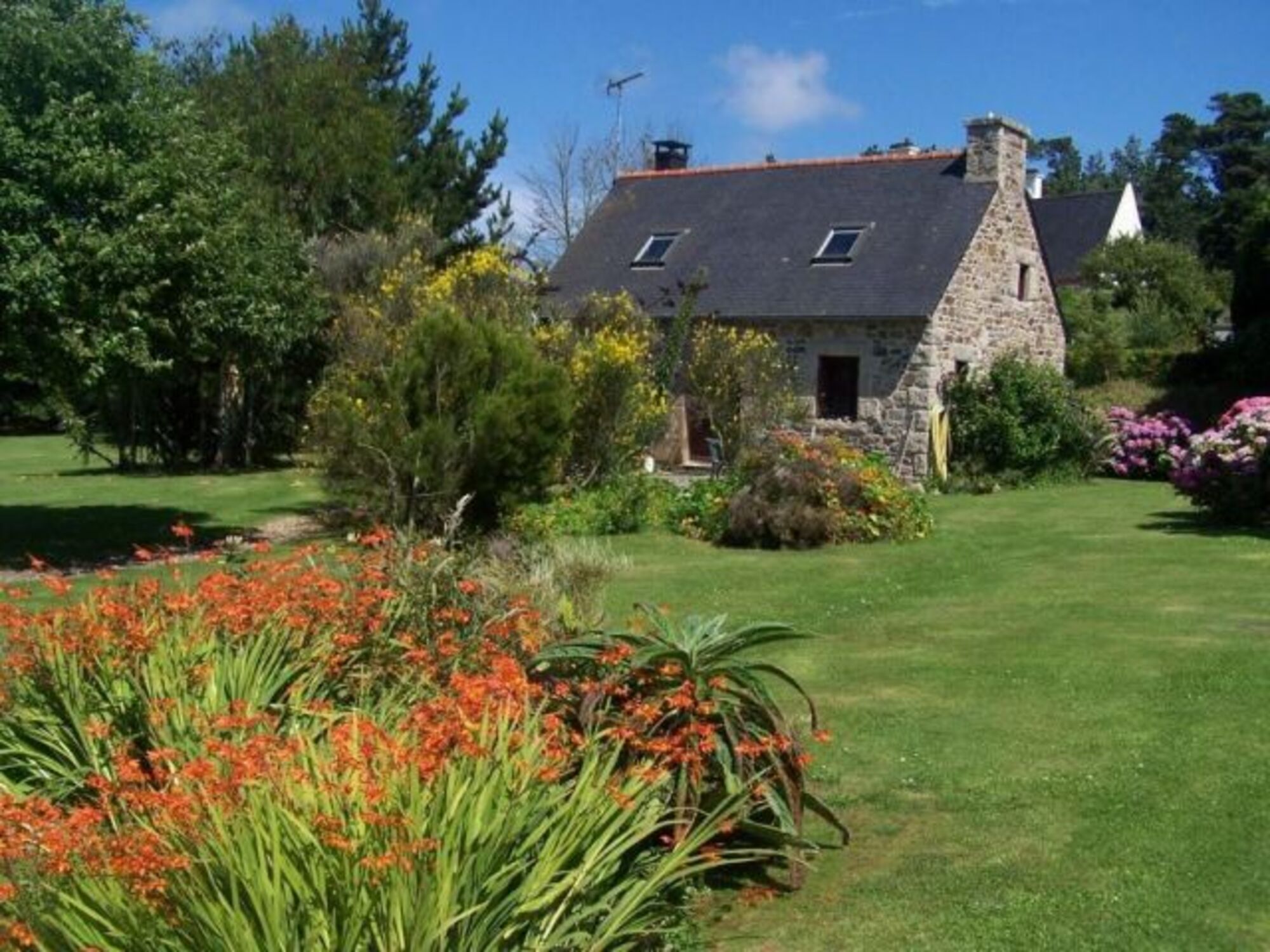 Kleines bretonischen Steinhäuschen auf einem 3000 m² grossen, vollständig, ausbruchsicher einzäunten Grundstück (2 m hoher Zaun) eignet sich sehr gut für einen entspannten Urlaub mit Ihren vierbeinigen Freunden.