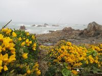Steinhäuschen zwischen Gischt und Ginster