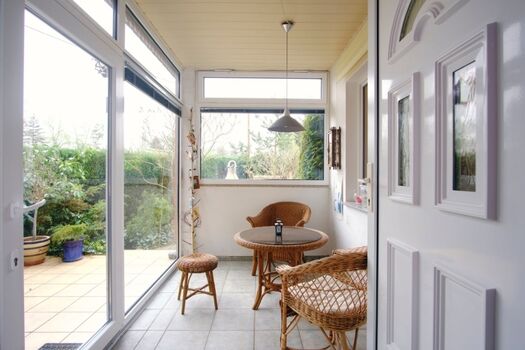 1 Wintergarten: Sitz- / Essecke (Fußboden: Fliesen)