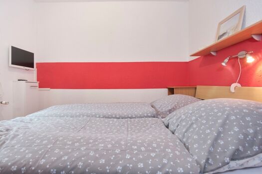 1 Schlafraum mit 1 Doppelbett (2 x 80 x 200 cm) (Fußboden: Laminat)