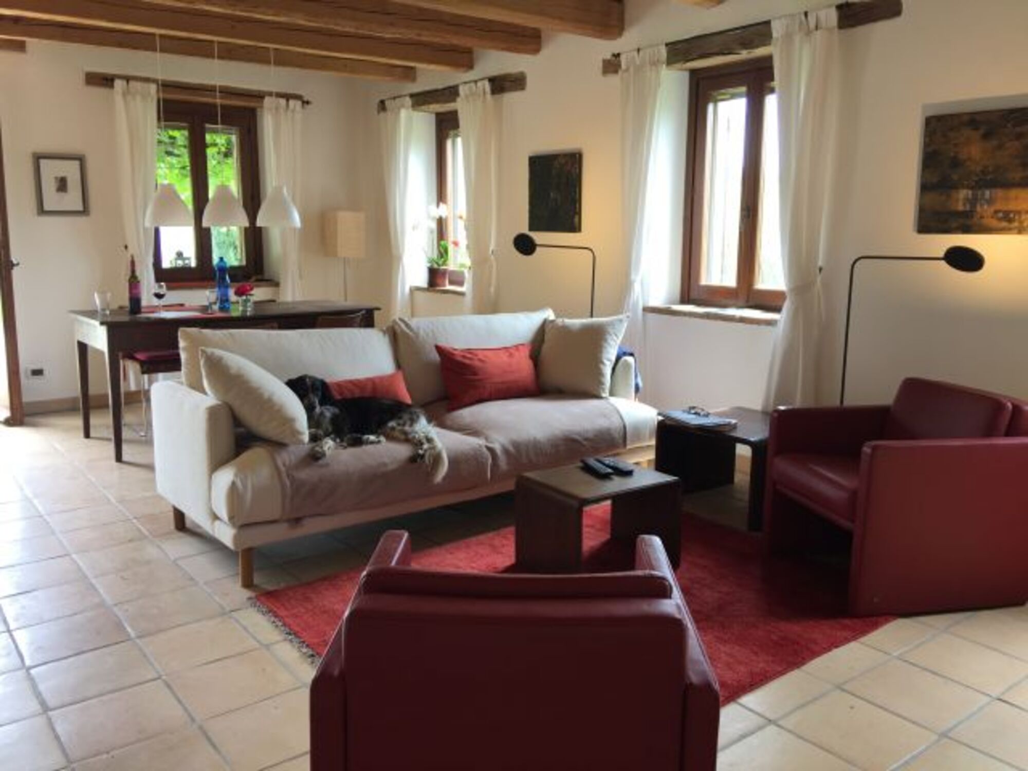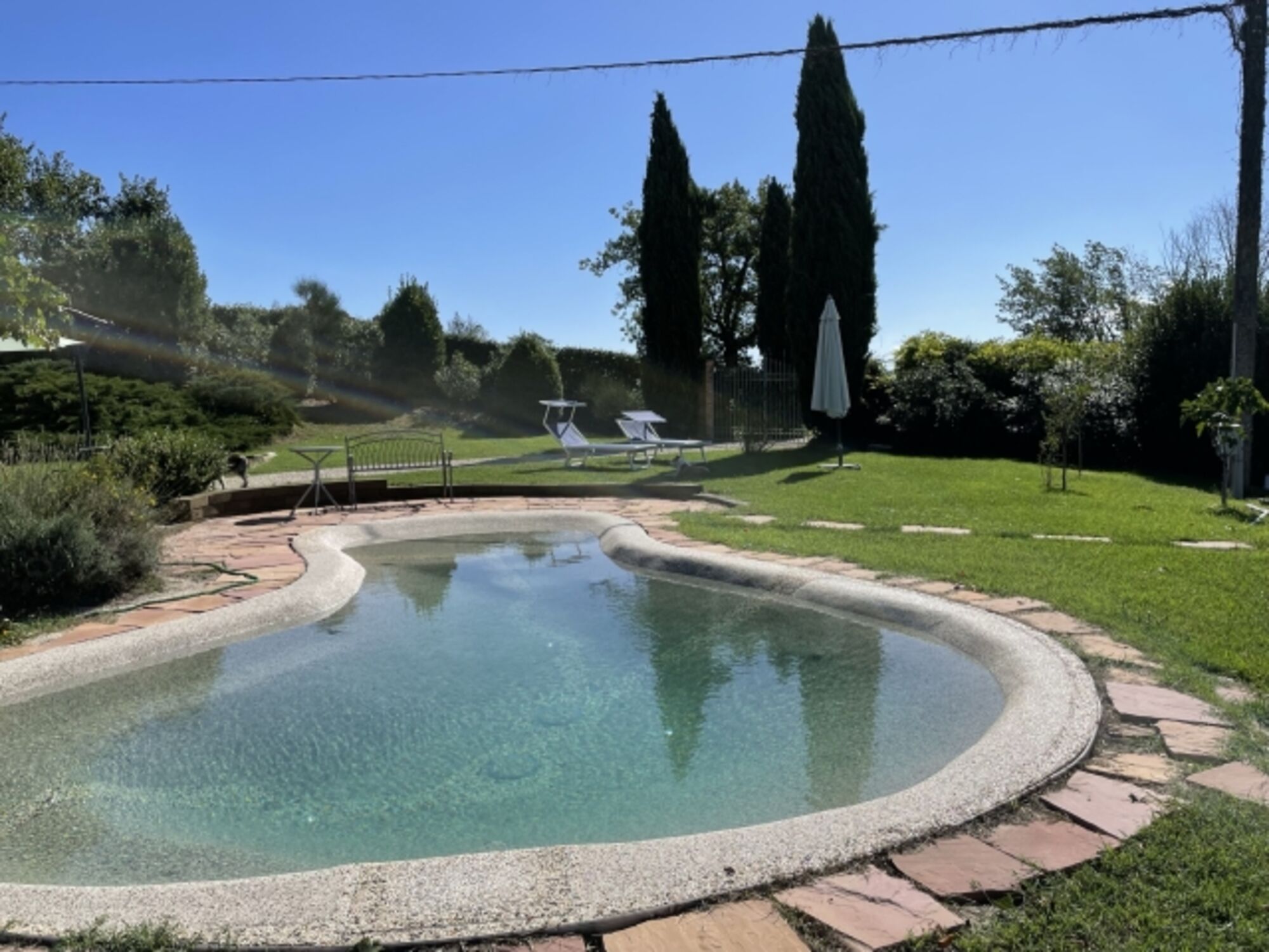 Statt Autolärm hören Sie das Zirpen der Grillen und Zwitschern der Vögel. Das Anwesen mit 2000qm Umschwung ist komplett umzäunt und ohne direkte Nachbarn. Die Wohnräume sind großzügig und bieten viel Raum und Licht. Sie sind zeitgemäß und bequem möbliert.