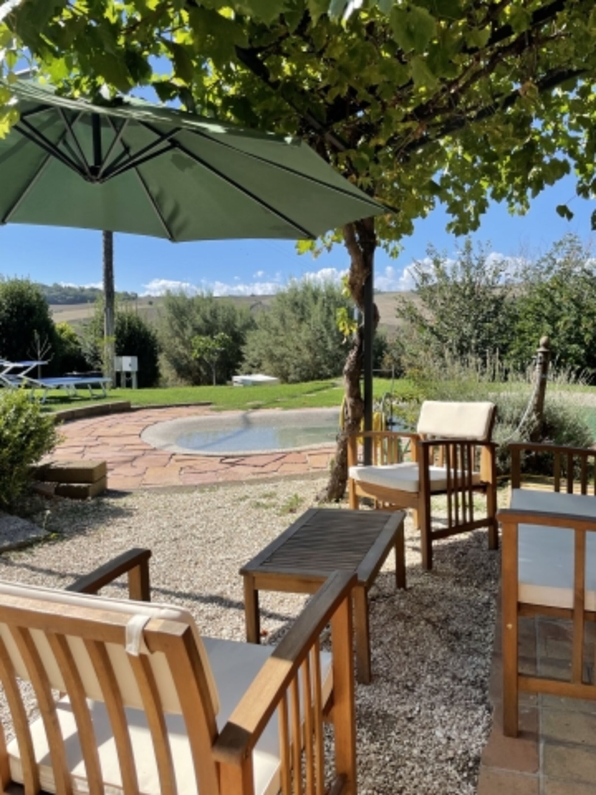 Casa Gina liegt im wunderschönen, hügeligen Hinterland in knapp 18 km Distanz zur Adria, etwa 3 km vom Dorf Corinaldo entfernt, idyllisch und sehr ruhig gelegen.
