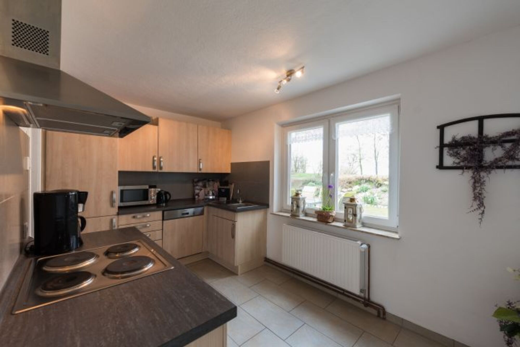 4-Platten Herd, Dunstabzugshaube, Gefrierschrank, Korkenzieher / Flaschenöffner, Geschirrhandtücher