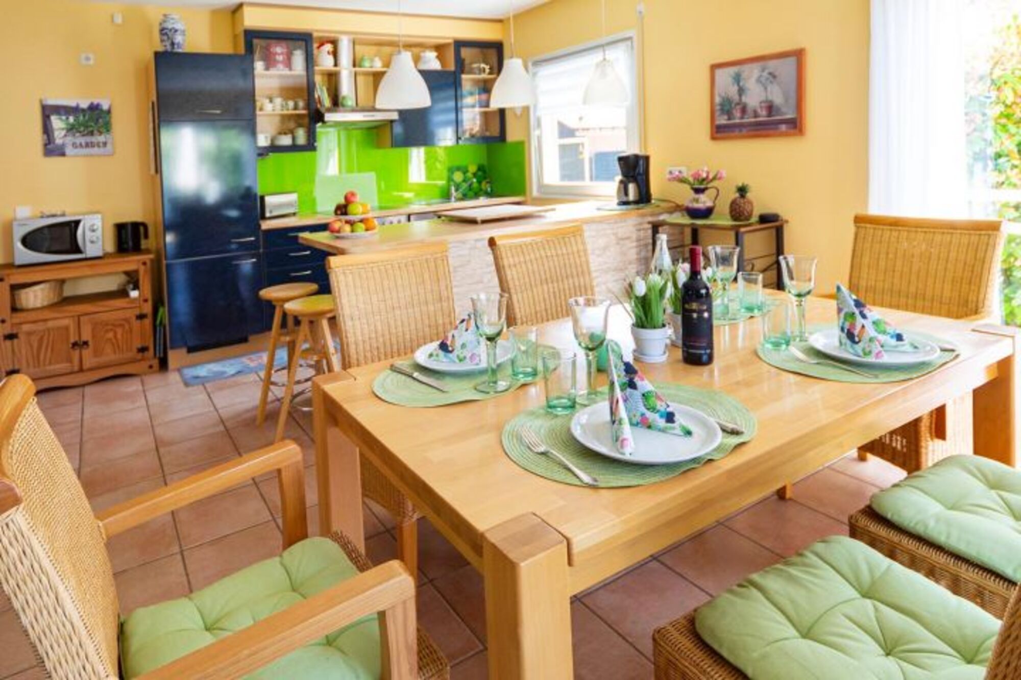 4-Platten Herd, Cerankochfeld, Dunstabzugshaube, Eierkocher, Korkenzieher / Flaschenöffner, Geschirrhandtücher, Essplatz in der Küche, TV in der Küche