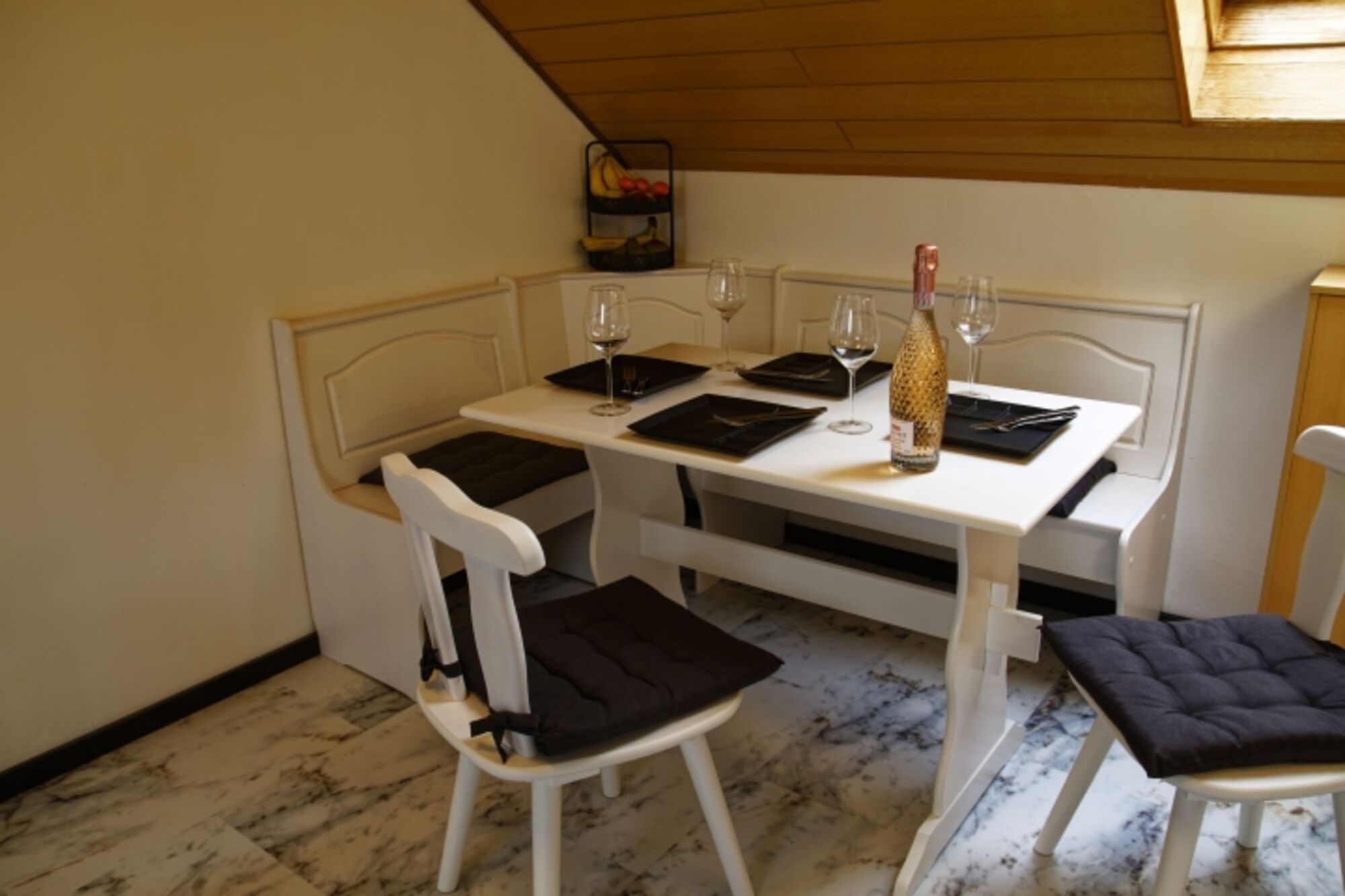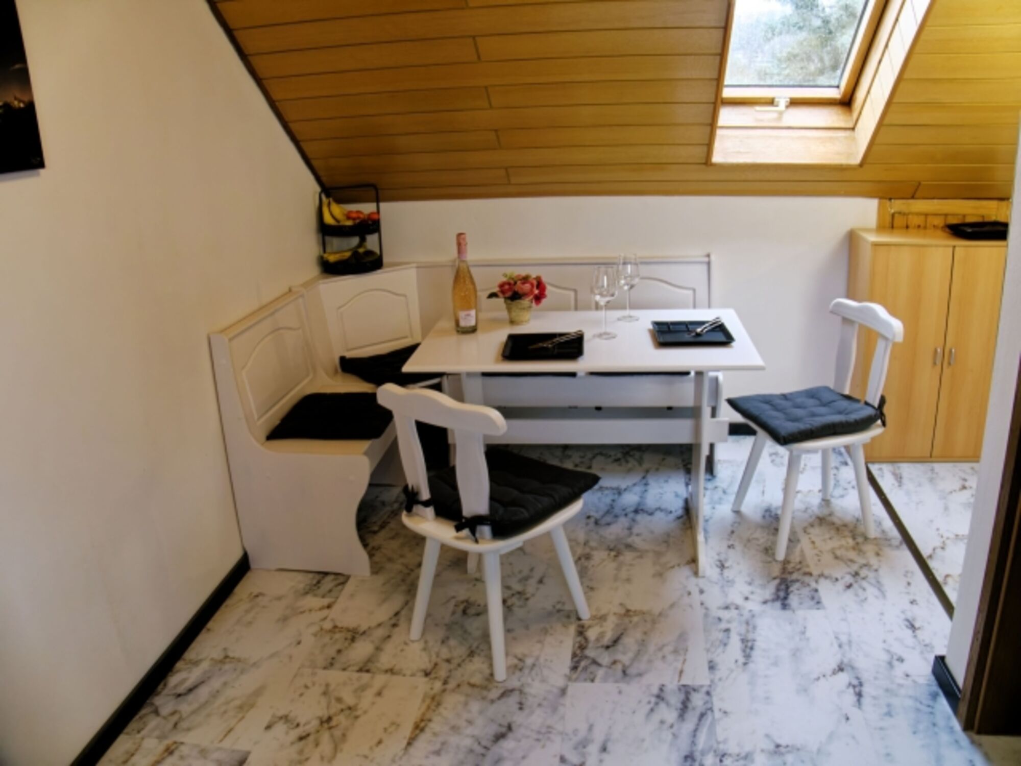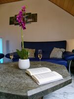 Sie müssen auf keinerlei modernen Komfort verzichten. Die Wohnung verfügt über ein eigenes Bad, Wohnzimmer, Küche und Schlafzimmer mit 4 Betten und direktem Zugang zum Balkon. Fernseher, Stereoanlage mit CD und ein W-LAN-Gastzugang gehören ebenfalls zur Ausstattung. Weitere Ausstattung: Wasserkocher, Toaster, Kaffeefiltermaschine, Mikrowelle, Backofen, Badewanne mit Duschvorrichtung, Waschtrockner (gegen Gebühr), Hundebett und Näpfe, Doppelbett, Einzelbett mit Ausziehfunktion für ein zweites Einzelbett, Mini-Gefrierschrank mit ausreichend Platz für Barfer, Hochstuhl (auf Anfrage), elektrischer Rollladen am Südfenster, Außensteckdose zum E-Bike laden vorhanden, moderne energiesparende LED Leuchtmittel sowie Strom aus 100 % Windenergie und aus der hauseigenen Photovoltaikanlage.