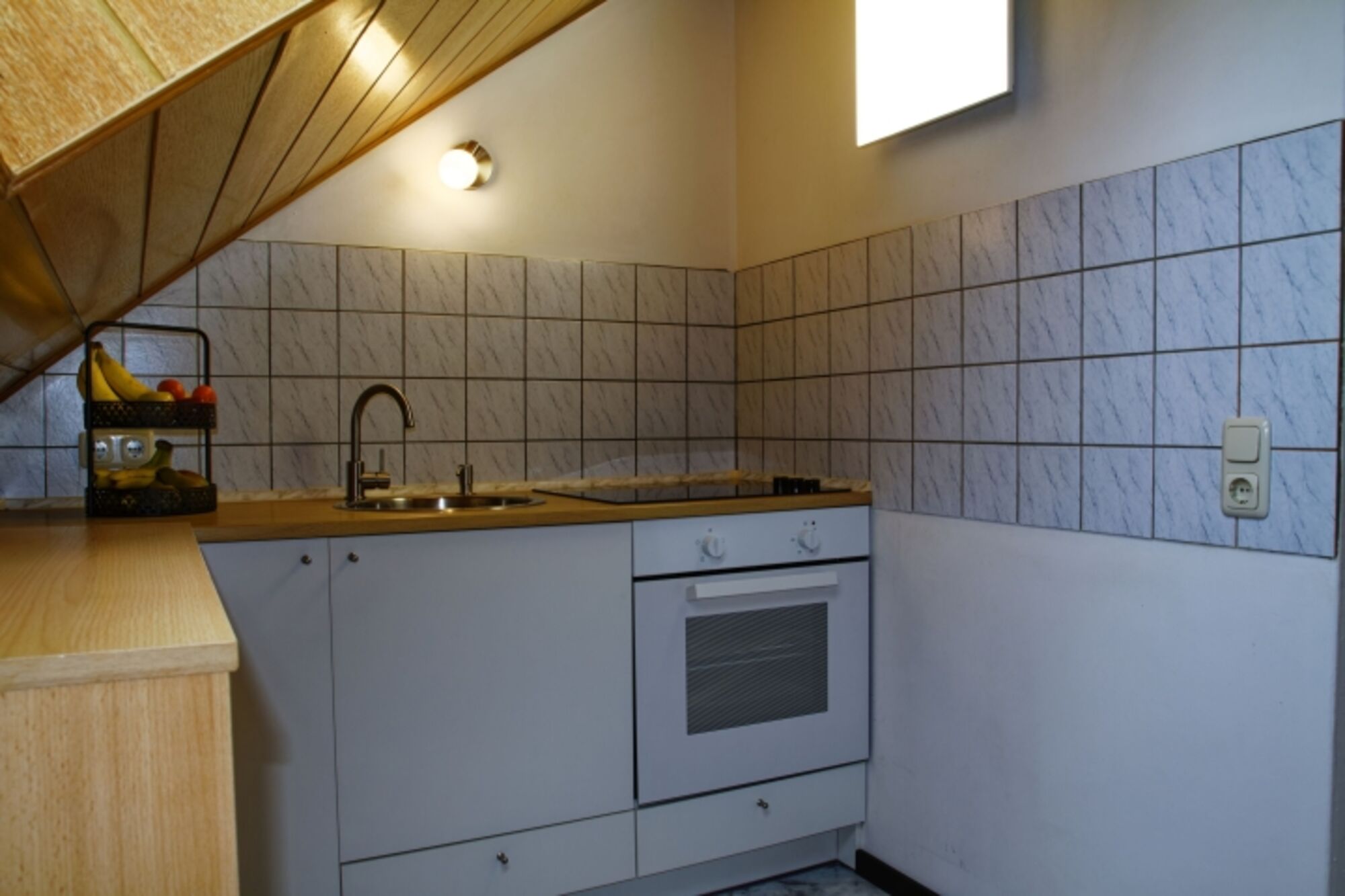 4-Platten Herd, Cerankochfeld, Kühlschrank mit Gefrierfach, Gefrierschrank, Senseo-Kaffeeautomat, Eierkocher, Korkenzieher / Flaschenöffner, Gewürze (Salz, Pfeffer, Zucker), Öl / Essig, Geschirrhandtücher, Mülltüten, Essplatz in der Küche, TV in der Küche