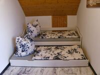 1 x Doppelbett 1 x Einzelbett mit Ausziehfunktion für ein zweites Einzelbett (siehe Fotos !) Deckenventilator Doppelbett 1,80 x 2,00m, Bett 1,20 x 2,00m, Einzelbett, Kommode, Spiegel, Leselampe am Bett, Fliegengitter