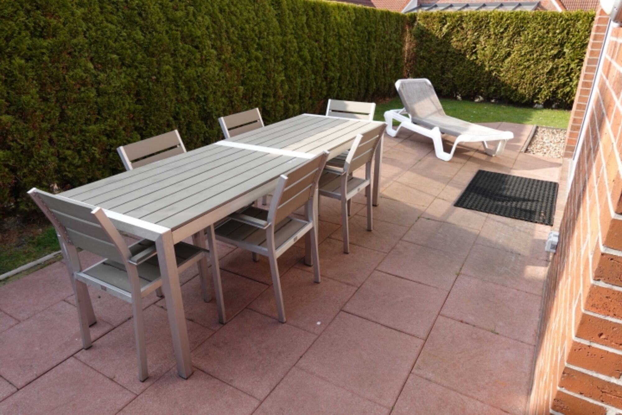 Der rund 300 m² große Bereich der Terrasse, des Innenhofs, inkl. Grillplatz, ist komplett eingezäunt, so dass man auch u.a. seinen Vierbeiner ohne stetige Aufsicht umherlaufen lassen kann.