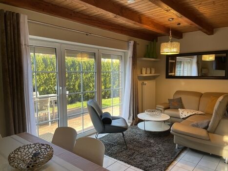 Ein behagliches Ferienhaus im Wangerland. Bis zu 6 Personen finden hier auf 80 m² Platz, mit Garten, Terrasse und Balkon.