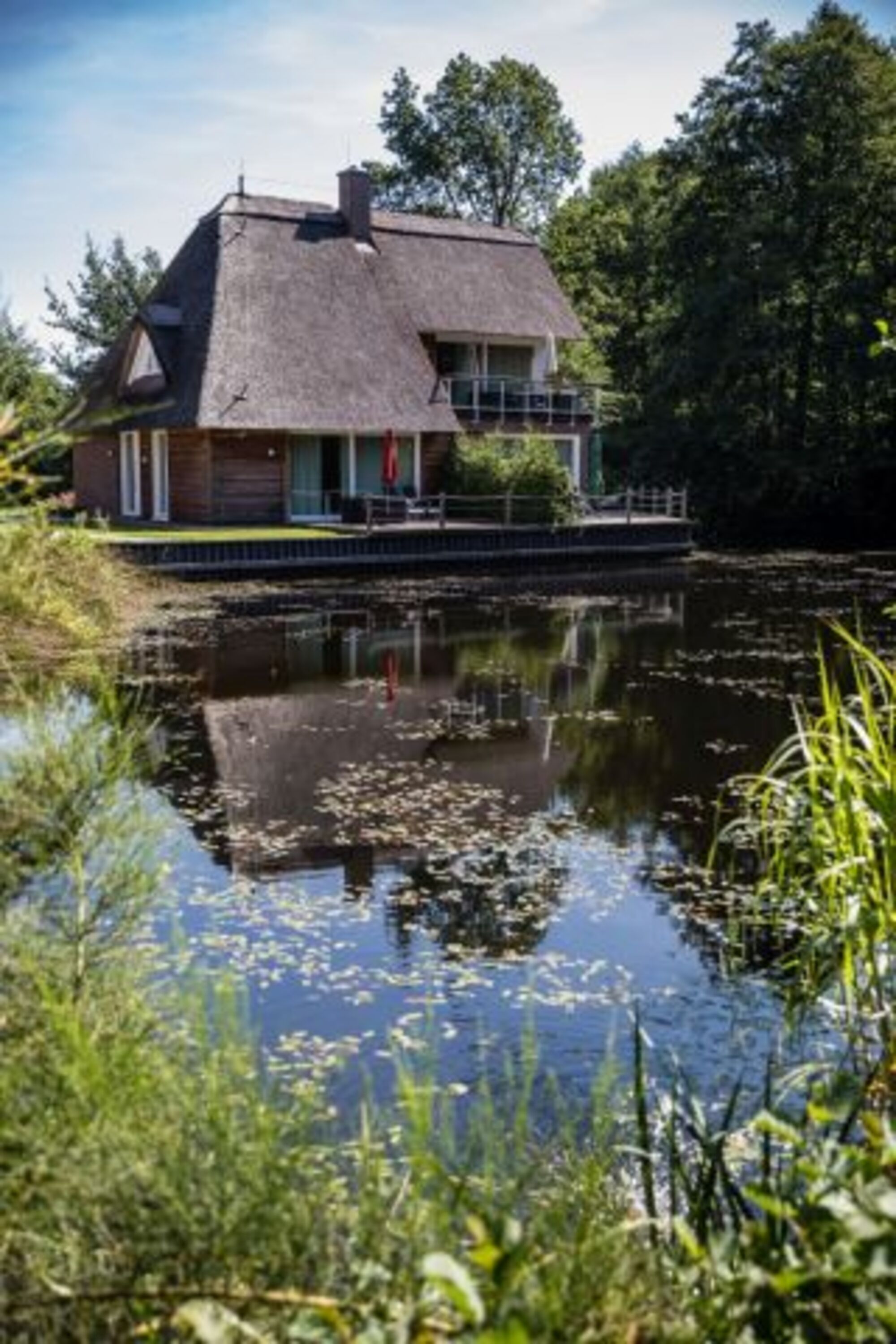 Unsere Ferienwohnung Rainbow Nr. 2 ist Teil eines reetgedeckten Hauses und befindet sich in der aus fünf Häusern bestehenden Ferienanlage Residenz am kleinen Meer. Es erwartet Sie eine ruhige, am Ortsrand gelegene Anlage mit eigenem See ganz in der Nähe des Zwischenahner Meeres. Die Ferienwohnung hat Südwestlage.