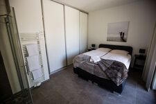 Integriertes Bad im Schlafzimmer Doppelbett 1,80 x 2,00m, Boxspringbett, Spiegel, Leselampe am Bett