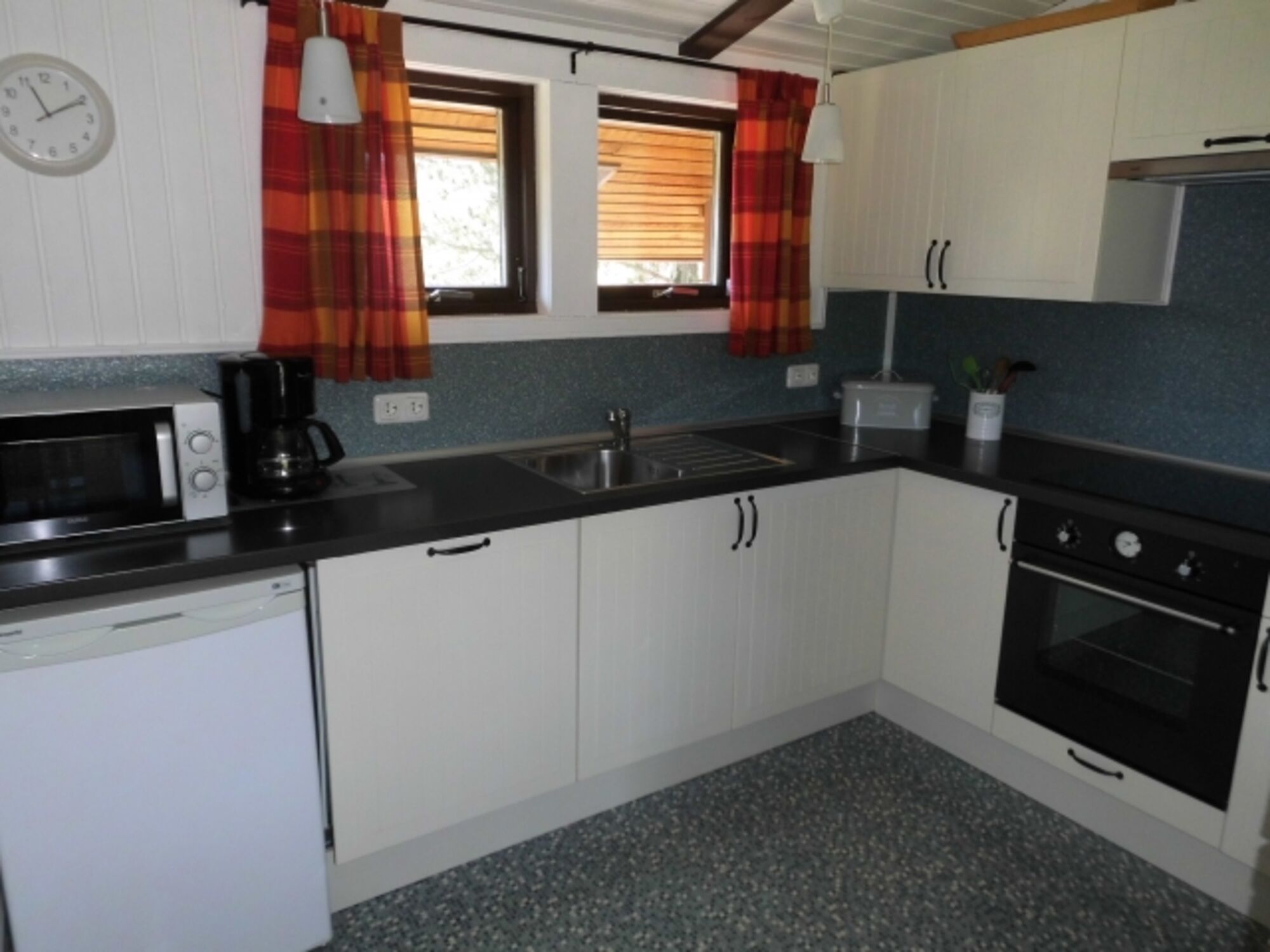Stilvoll und mit viel Liebe zum Detail eingerichtet, verfügt das Haus über 3 Schlafzimmer, das 1. Zimmer mit einem Doppelbett 180 x 200cm, das 2. Zimmer mit einem 140 x 200cm Bett und das 3. Zimmer mit einem Etagenbett, jeweils 90 x 190cm. Unser Ferienhaus bietet nicht nur viel Raum und Komfort, sondern punktet auch mit einer hochwertigen, geschmackvollen Ausstattung. Und wer auch im Urlaub ONLINE sein möchte, dem steht auch kostenloses WLAN zur Verfügung. In dem großen, lichtdurchfluteten Wohn/Essbereich befindet sich ein dänischer Kaminofen, der an kühlen Tagen für eine wohlige Wärme sorgt. Darüber hinaus befinden sich Elektroheizkörper in jedem Zimmer. Ein großer Flachbild-TV und eine Stereoanlage sorgen für Entertainment. Die vollausgestattete Landhausküche lässt keine Wünsche offen, und verfügt über Toaster, Kaffeemaschine, Wasserkocher, Mikrowelle, Cerankochfeld, Kühlschrank mit kleinem Gefrierfach, Backofen & Geschirrspüler. In dem ansprechenden, Tageslicht- Badezimmer befinden sich eine Dusche und WC. Direkt vom Wohnbereich aus gelangen Sie auf die große, zur Sonnenseite (Südwest) hin ausgerichtete und überdachte Holzterrasse (16qm) welche zum Entspannen und Verweilen einlädt. Lassen Sie hier den Tag bei einem Glas Wein oder einem Grillabend ausklingen. Schöne Terrassenmöbel, zwei Sonnenliegen, und ein Holzkohlegrill runden das Angebot ab.