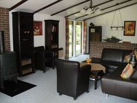 TV-Sat, TV-Flachbildschirm, CD-Player, Bücher, Kaminofen, Eckcouch, Sessel