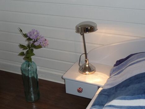Das freistehende Ferienhaus verfügt über ein Schlafzimmer mit Doppelbett und einem offenem Galerieschlafzimmer mit zwei Einzelbetten. Außerdem einem großen Wohn-Essbereich mit Küche.