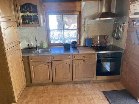 Cerankochfeld, Eierkocher, Mixer, Korkenzieher / Flaschenöffner, Gewürze (Salz, Pfeffer, Zucker), Geschirrhandtücher