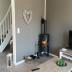 EG: Wohnraum mit Essecke und offener Küche, Kaminofen, Abstellraum, Bad mit Dusche /WC, Flur.