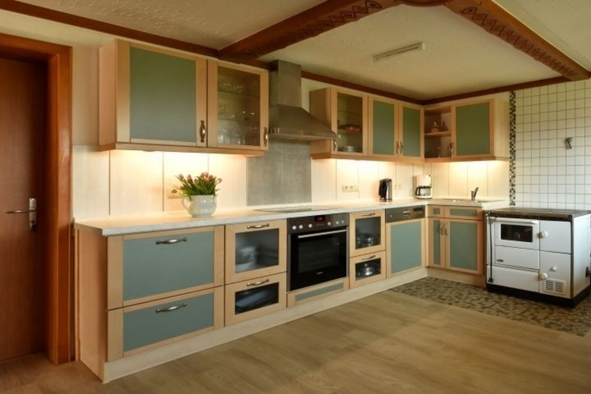 Cerankochfeld, Dunstabzugshaube, Korkenzieher / Flaschenöffner, Essplatz in der Küche