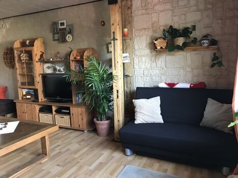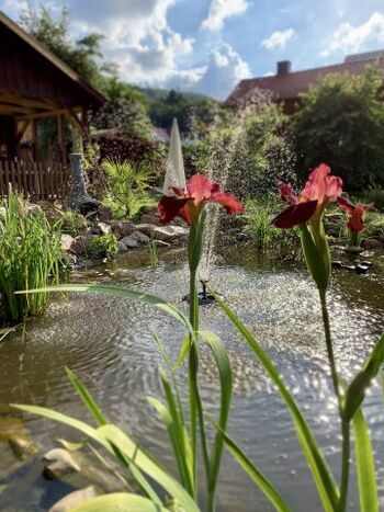 65qm Wohnung mit Balkon. Komplett ausgestattet. Umzäunter Garten mit Gartenteich, Gartenhütte, Grillmöglichkeit und viel Auslauf für Ihren Hund.