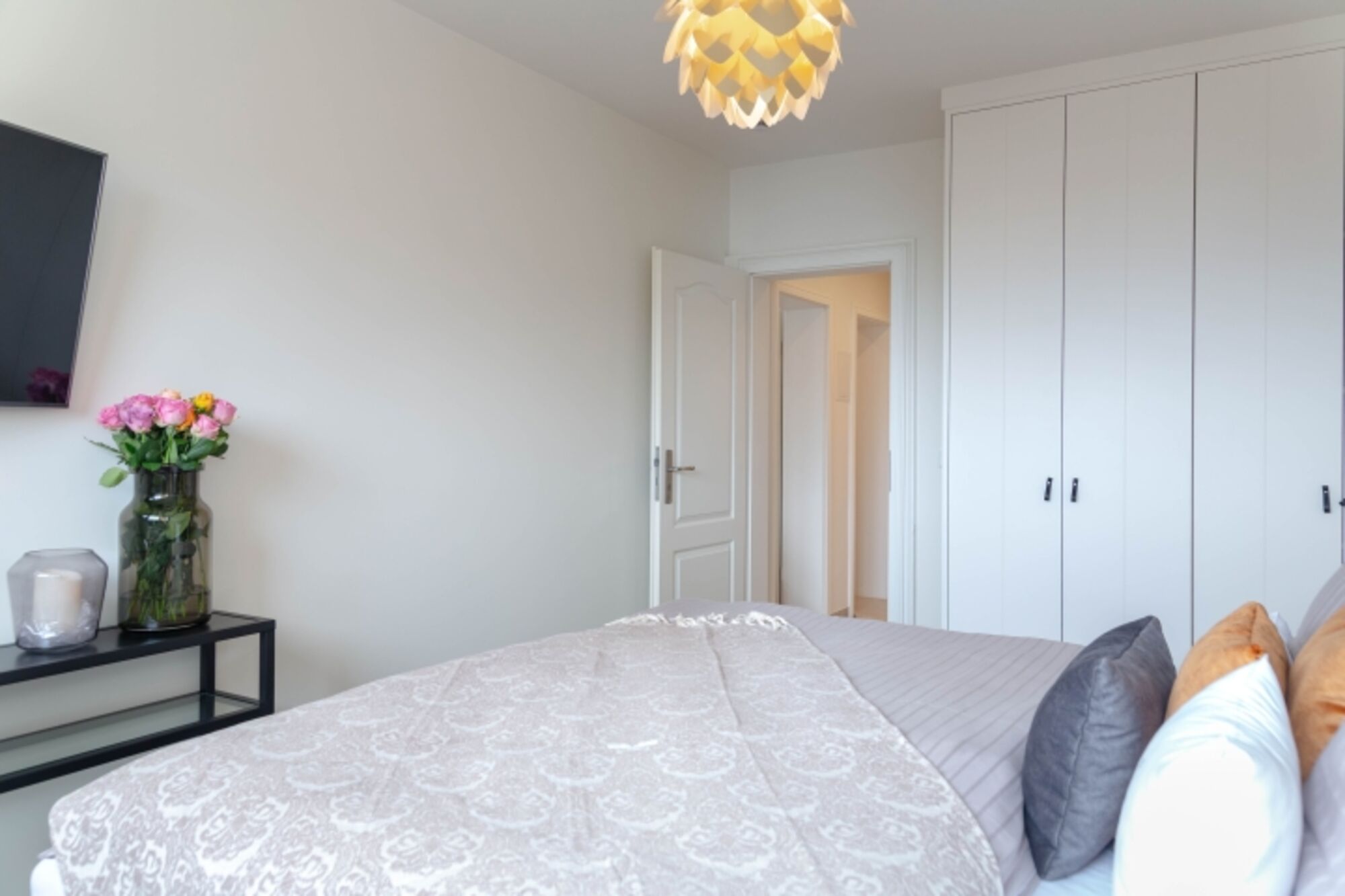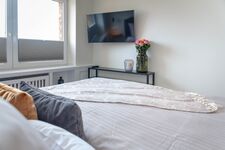 Für Ihre erholsame Nachtruhe sorgt ein geschmackvoll eingerichtetes Schlafzimmer mit einem komfortablen Bett und hochwertiger Bettwäsche. Das en Suite-Badezimmer ist mit einer bodengleichen Dusche ausgestattet, die Ihnen ein Wohlfühl-Erlebnis bietet. Hier finden Sie zudem praktische Annehmlichkeiten wie einen Haartrockner und einen Ganzkörperspiegel.