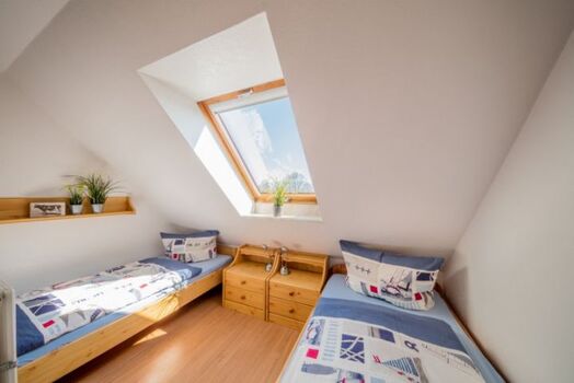 Neben dem Elternschlafzimmer befindet sich ein weiteres Schlafzimmer mit 2 Betten, in denen die Kleinen oder Großen nach einem Tag reich an Abenteuern bestimmt selig einschlafen werden. Eine ideale Ferienwohnung für zwei bis vier Personen.