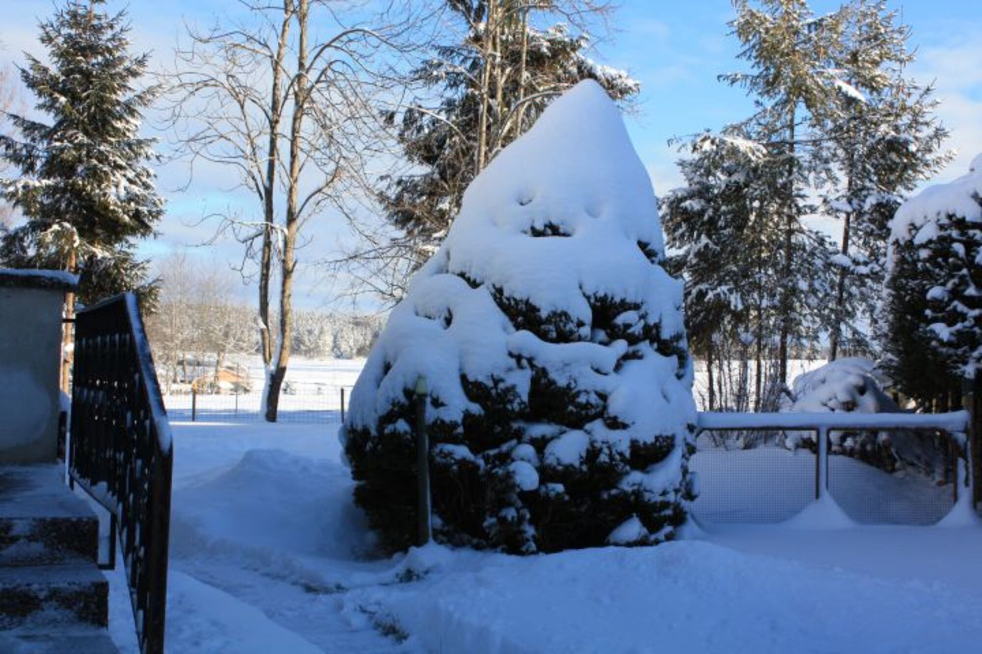 der Garten ist komplett umzäunt.