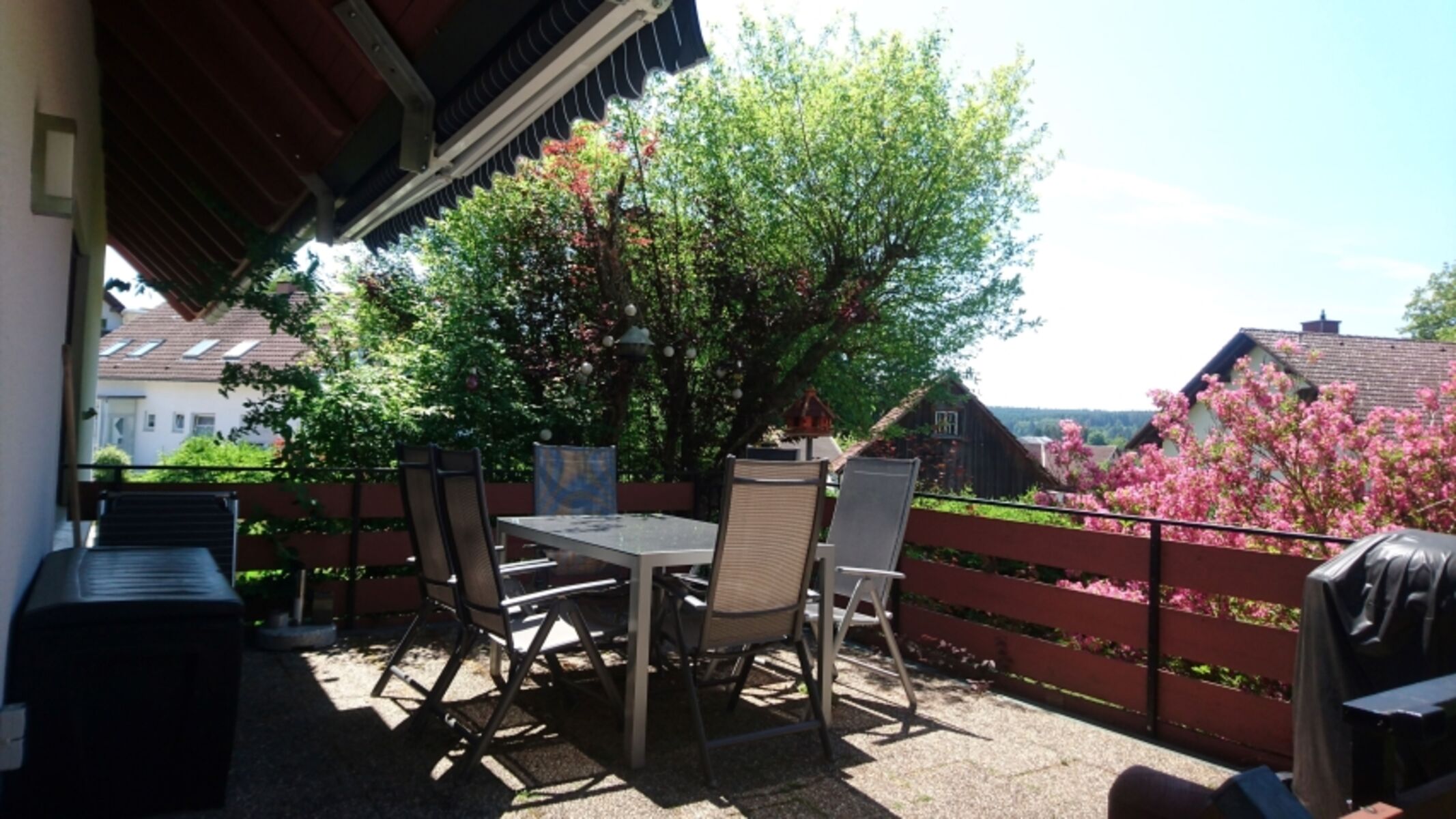 Liegewiese, komplett eingezäunter Garten, Gartenmöbel, Kohlegrill, Balkonmöbel, Markise