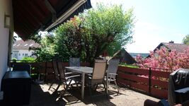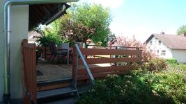 Eine 20qm große Terasse lädt zum relaxen ein. Sie ist umzäunt und hat ein Tor zum Garten und