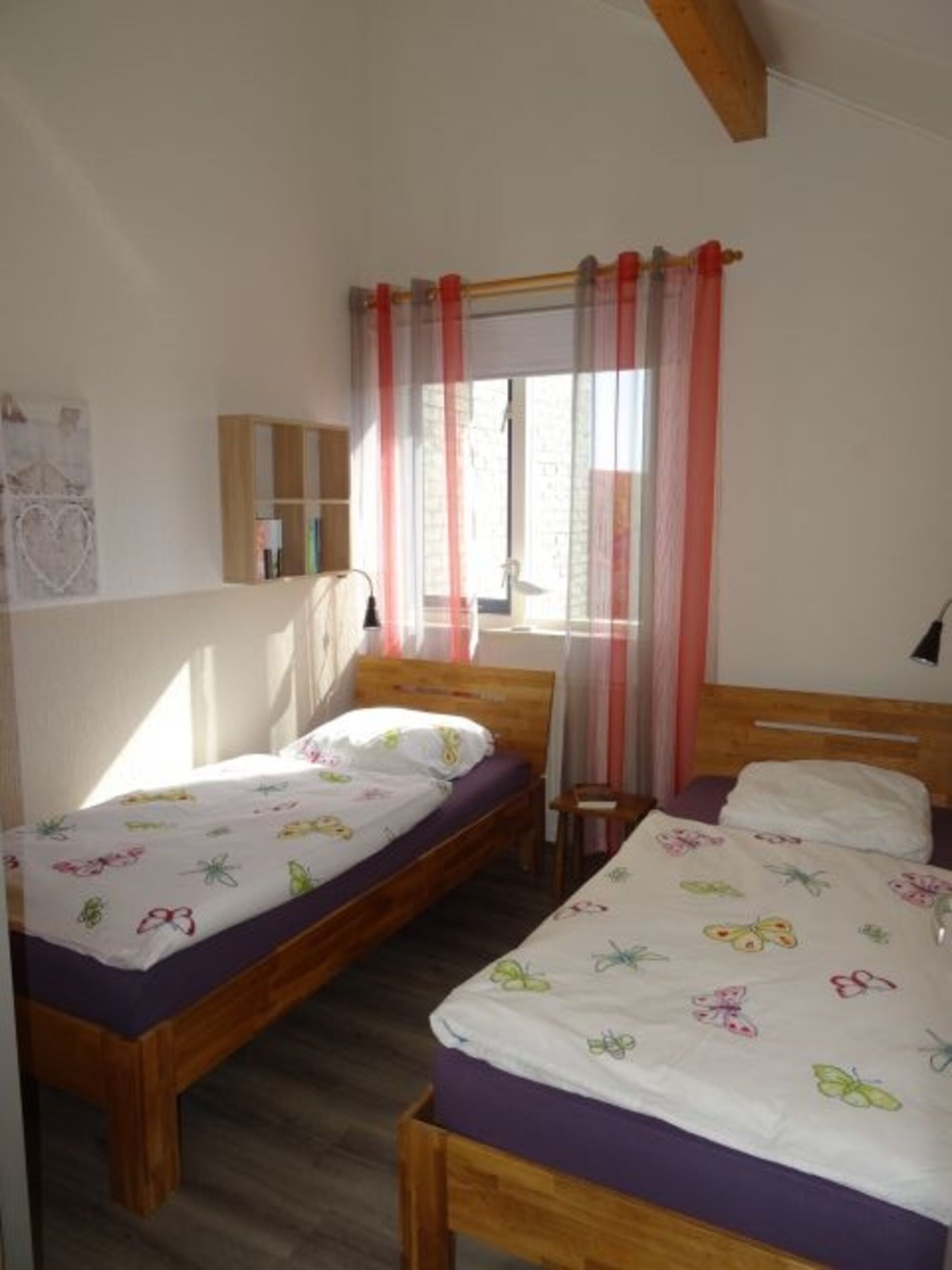 Die beiden Einzelbetten haben eine Größe von 90 x 200 cm Einzelbett, Leselampe am Bett
