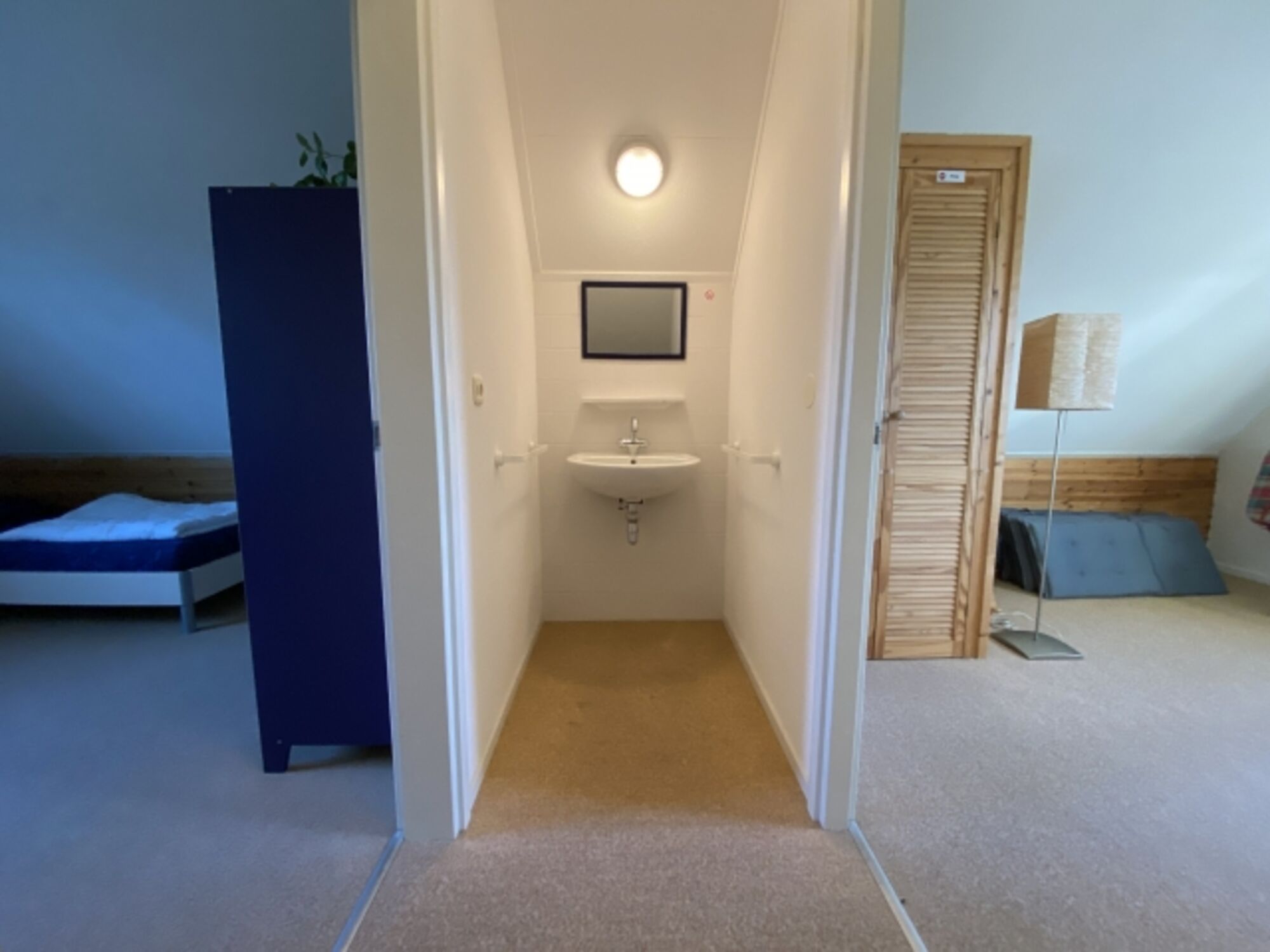 Im Erdgeschoss befindet sich ein Schlafzimmer mit einem angrenzenden Badezimmer mit begehbarer Dusche.