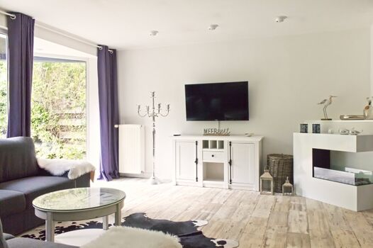 Großzügige Fewo mit direkter Wasserlage, eingezäunt, 2 Bäder, Kamin
