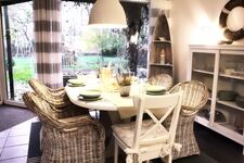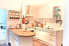 4-Platten Herd, Cerankochfeld, Dunstabzugshaube, Gefrierschrank, Kaffeevollautomat, Nespresso-Automat, Mixer, Korkenzieher / Flaschenöffner, Gewürze (Salz, Pfeffer, Zucker), Öl / Essig, Geschirrhandtücher, Mülltüten, Essplatz in der Küche